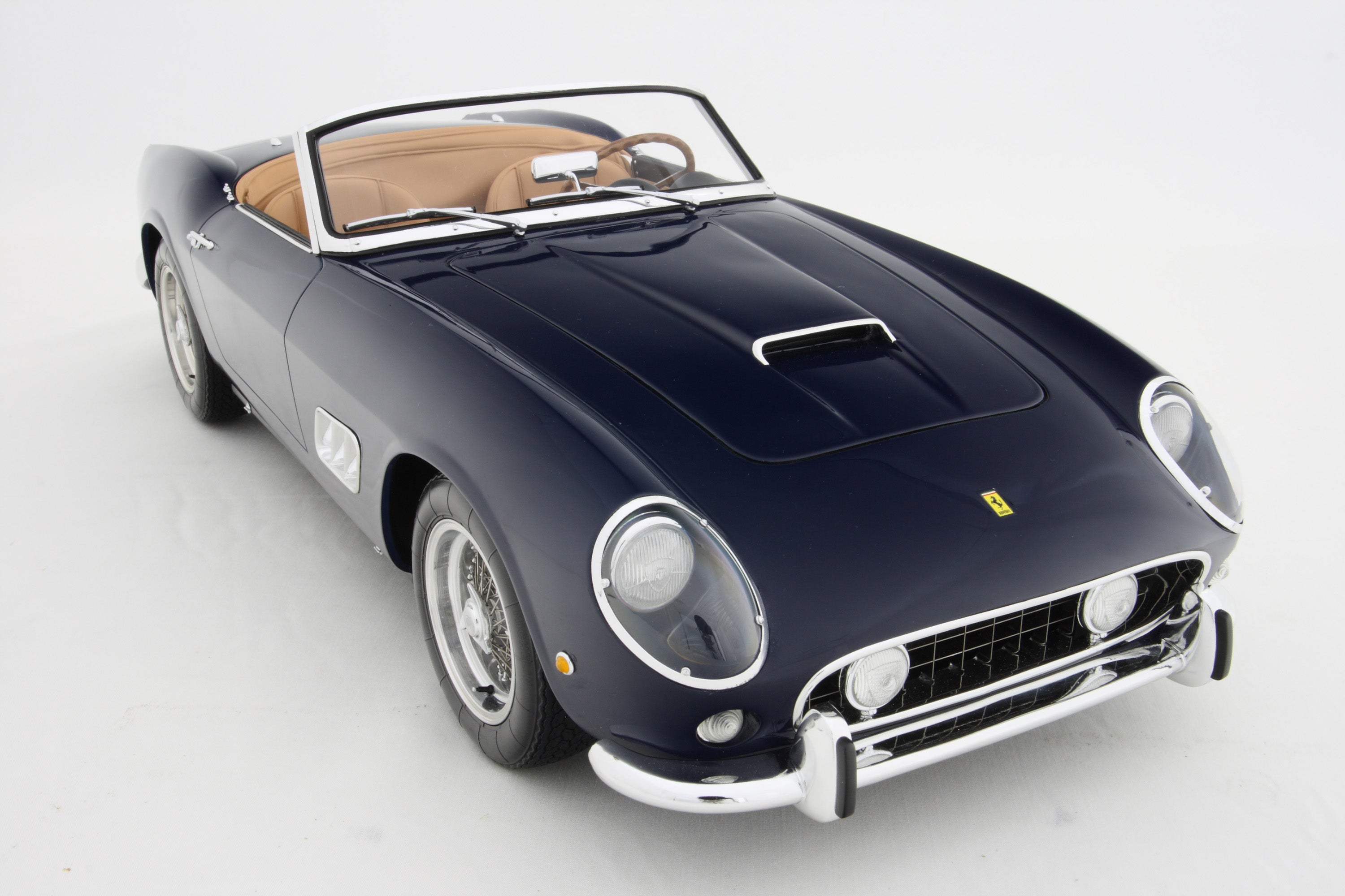 Amalgam Collection offer a unique bespoke service for owners of the Ferrari 250 GT California. We will create for you a superbly and deeply detailed 1:8 scale model replicating every aspect of your car’s specification. We will finish the model with the precise colour of the paint and the interior finishes. Even the smallest details, including the colour of the stitching on the seats, the license plates or the wheels, every visible aspect of your car will be perfectly reproduced on your model.