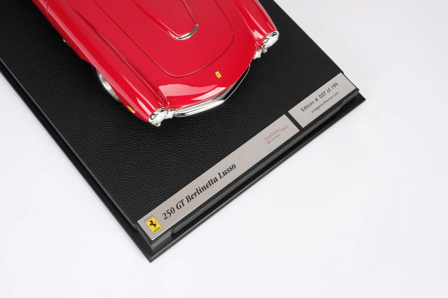 This fine 1:8 scale model of the Ferrari 250GT Lusso has been handcrafted and finished in our workshops with the co-operation and assistance of Ferrari regarding original finishes, materials, archive imagery and drawings. The use of supremely accurate digital scanning of the original car has allowed us to perfectly recreate every detail at scale. Furthermore, it has undergone detailed scrutiny by both engineering and design teams to ensure complete accuracy of representation.