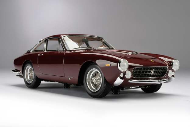 The much-celebrated 250 series by Ferrari is arguably the most iconic family of cars ever known and the Lusso is considered by many as its most attractive. Debuting at the Paris Salon in October 1962, with styling by Pininfarina, the Lusso (or ‘luxury’) was that rare machine capable of satisfying a seemingly impossible spectrum of needs; the ability to perform over long journeys at high speeds whilst still providing the absolute in comfort for both driver and passenger. Exquisitely proportioned, it fused a low-hung nose with hewn Kamm tail and its comforts included a fully trimmed interior and a softer suspension than its track-dwelling siblings. Hung on a short wheelbase chassis, the Lusso was powered by a light and compact three litre V12 engine combing three twin-choke Weber carburettors. With a top speed of 150mph (240km/h) and a handy 0-100mph (0-160km/h) acceleration time of 19.5 seconds, the Lusso was the thrilling finale of the 250 series; an unrepeatable family of road-going machinery.