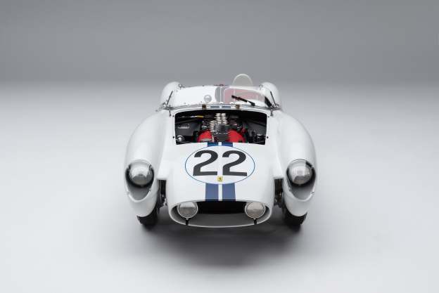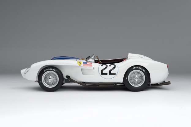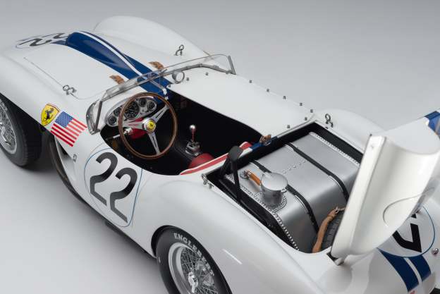 Limited to just 199 piecesAs raced by Ed Hugus and team mate Ray ‘Ernie’ Erickson to seventh place in the 24 Hours of Le Mans on the 21st and 22nd June 19581:8 scale model, over 49 cms/19 inches longEach model hand-built and assembled by a small team of craftsmenMade using the finest quality materialsComplete with opening trunk and removeable engine coverOver 4000 hours to develop the modelOver 400 hours to build each modelThousands of precisely engineered parts: castings, photo-etchings and CNC machined metal componentsBuilt using extraordinarily precise digital data, after from scanning an original car - chassis 0734Paint codes, material specifications and archive imagery provided by the historians at both the Automotive Club de L'Quest and Ferrari ClassicheOfficially licensed 24 Hours of Le Mans productThe 250 Testa Rossa is now one of the world’s most sought after Ferraris. The TR was designed with existing Ferrari customers in mind, many of whom were currently racing with the 500 TRC model. The 500 TRC was known for its sublime handling and the 250TR built on this quality, using a similar chassis as platform in which to incorporate a much more powerful V12 engine with six twin-choke carburettors. The 250 Testa Rossa won the Manufacturers’ World Championship for Ferrari in 1958.