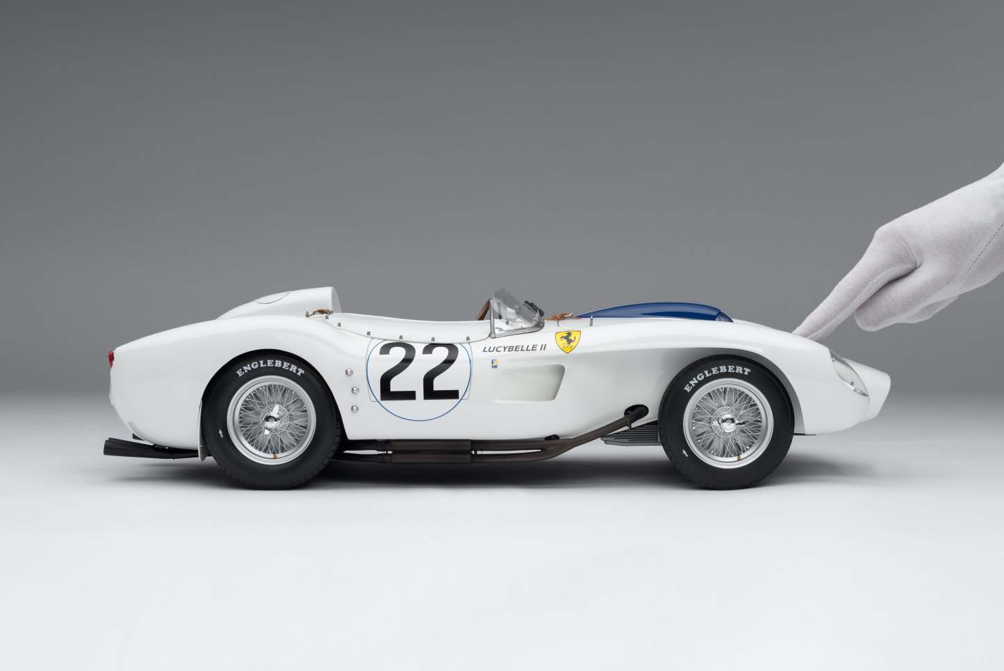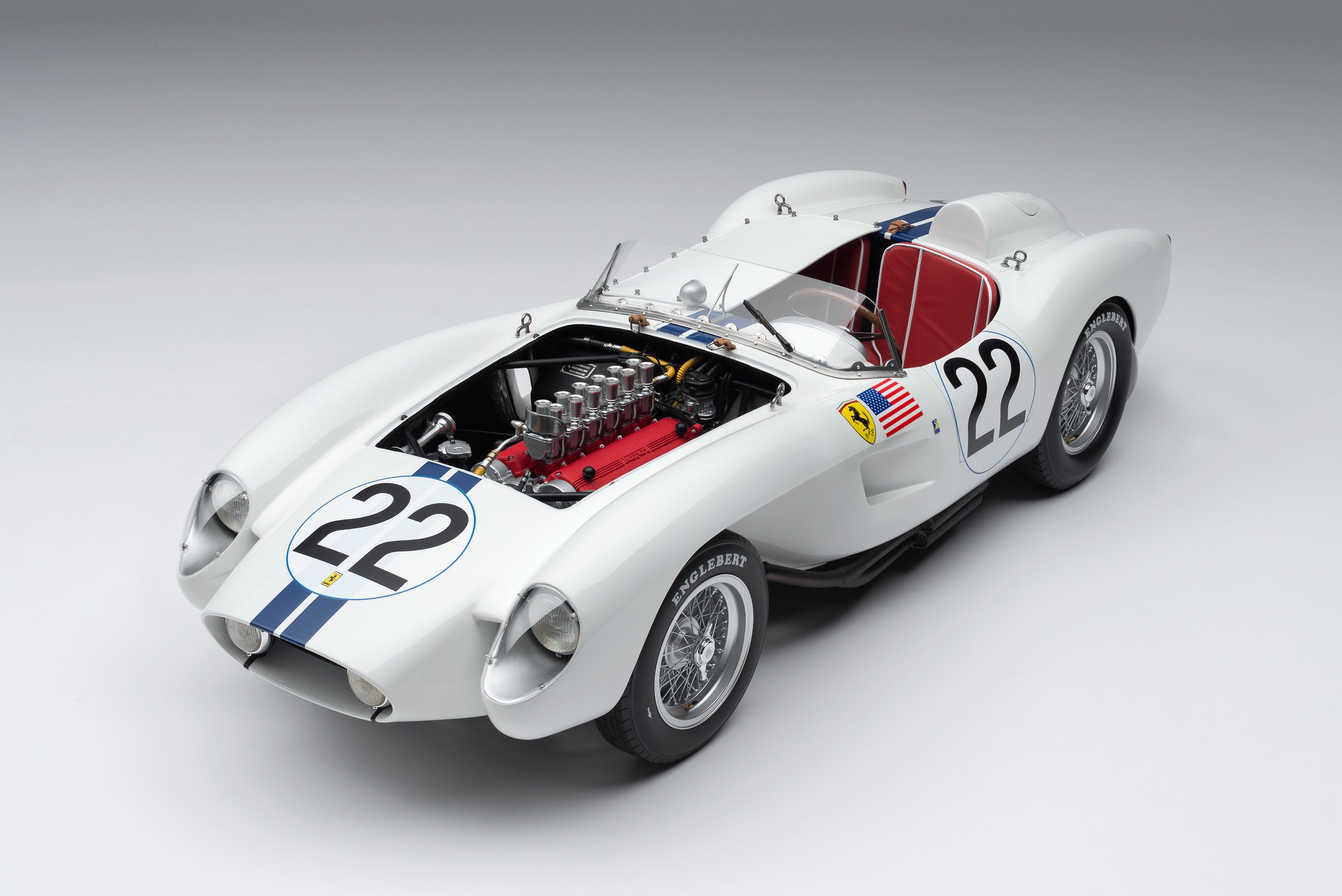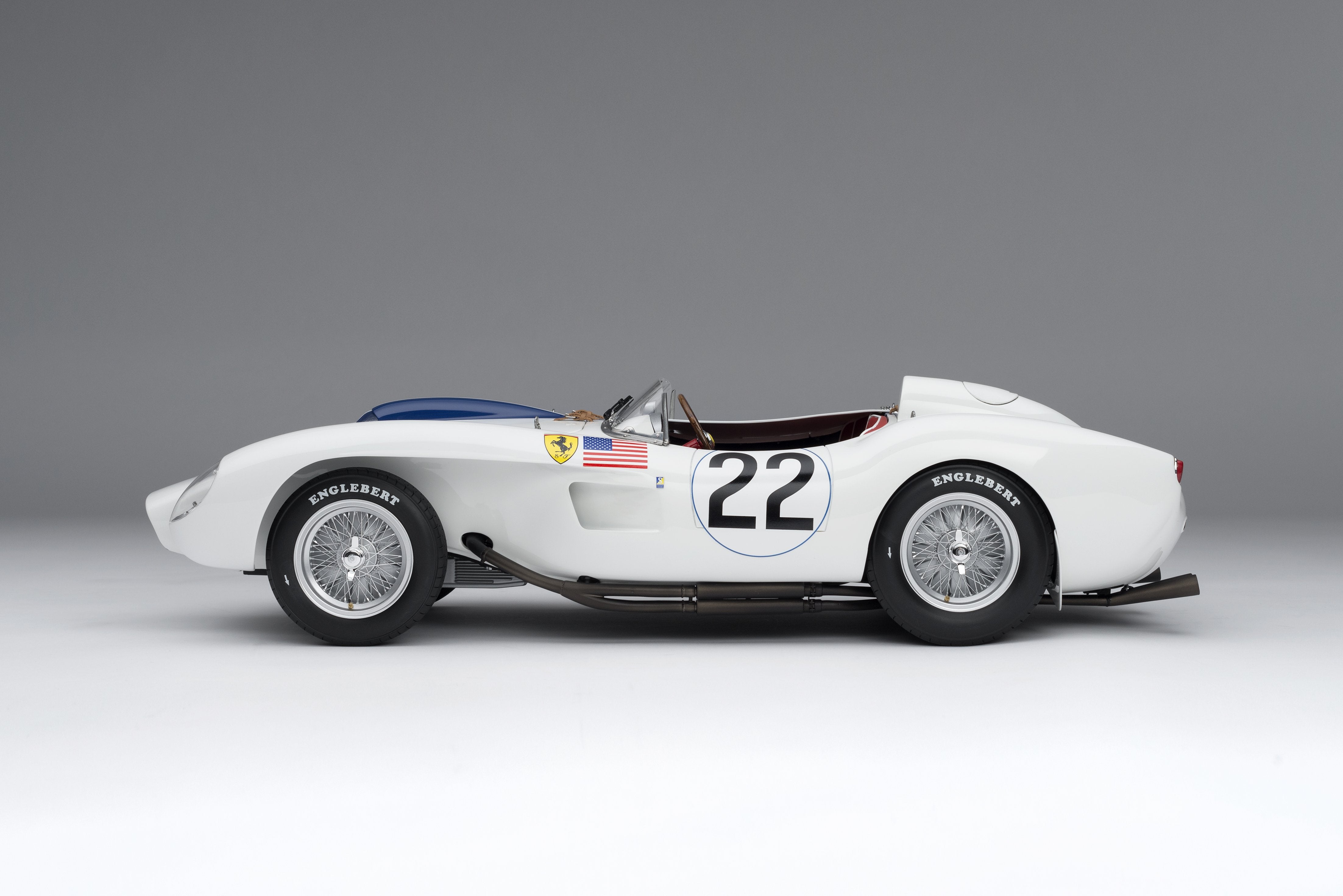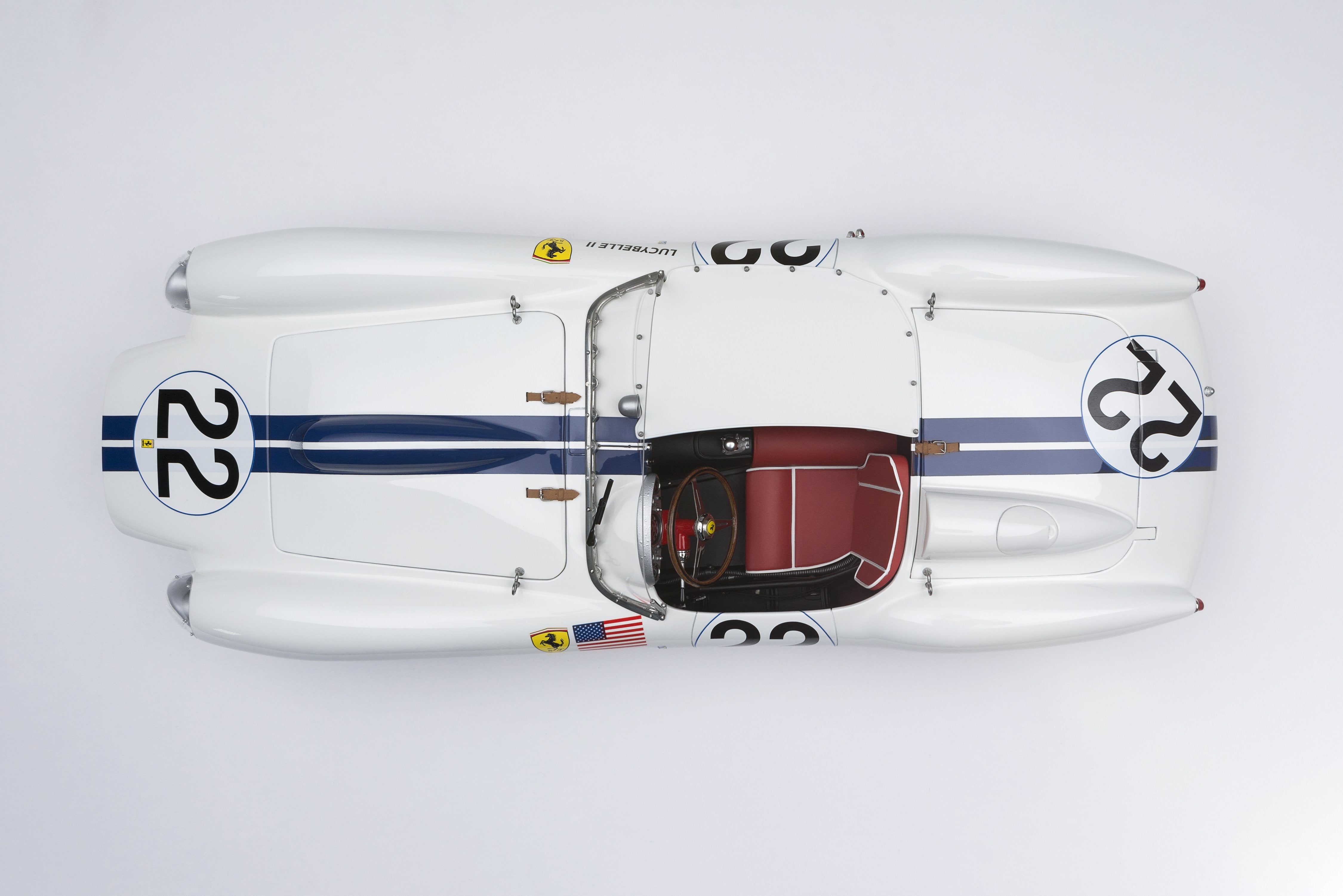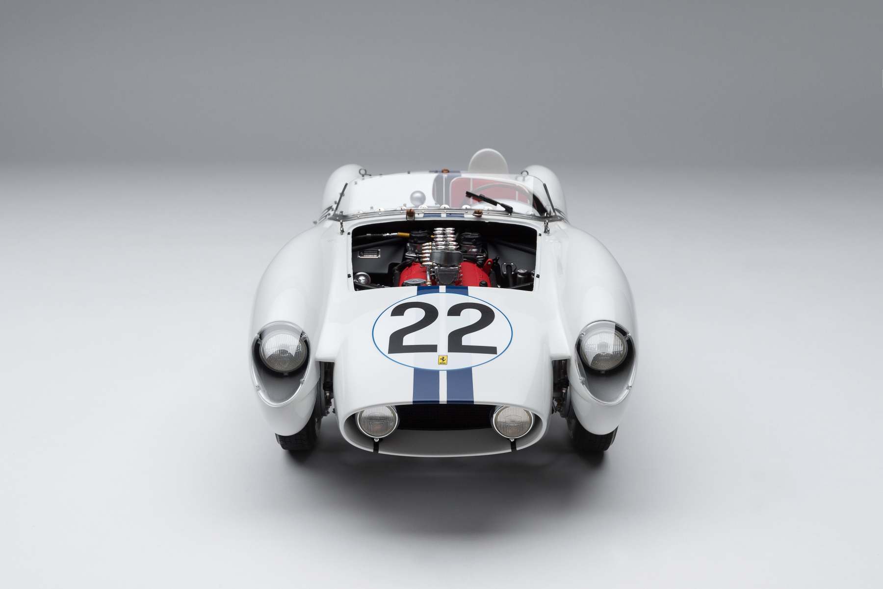 This fine 1:8 scale model of the Ferrari 250 TR has been handcrafted and finished in our workshops with the co-operation and assistance of the historians at both the Automotive Club de L'Quest and Ferrari Classiche regarding original finishes, materials, archive imagery and drawings. The use of supremely accurate digital scanning of the original car has allowed us to perfectly recreate every detail at scale. Furthermore, it has undergone detailed scrutiny by both Ferrari’s engineering and design teams to ensure complete accuracy of representation.