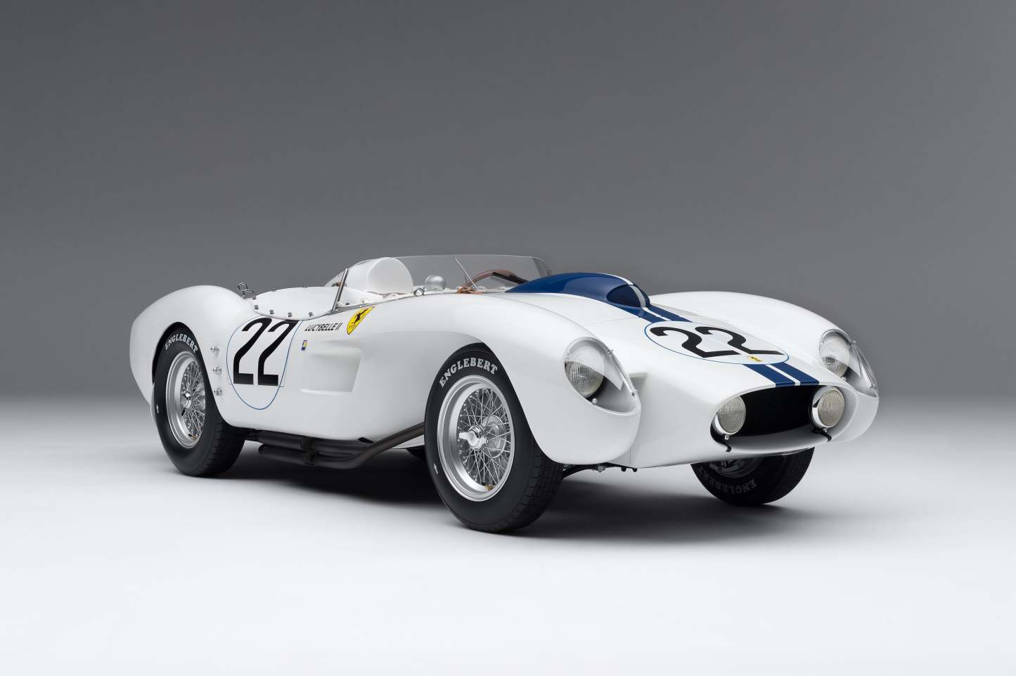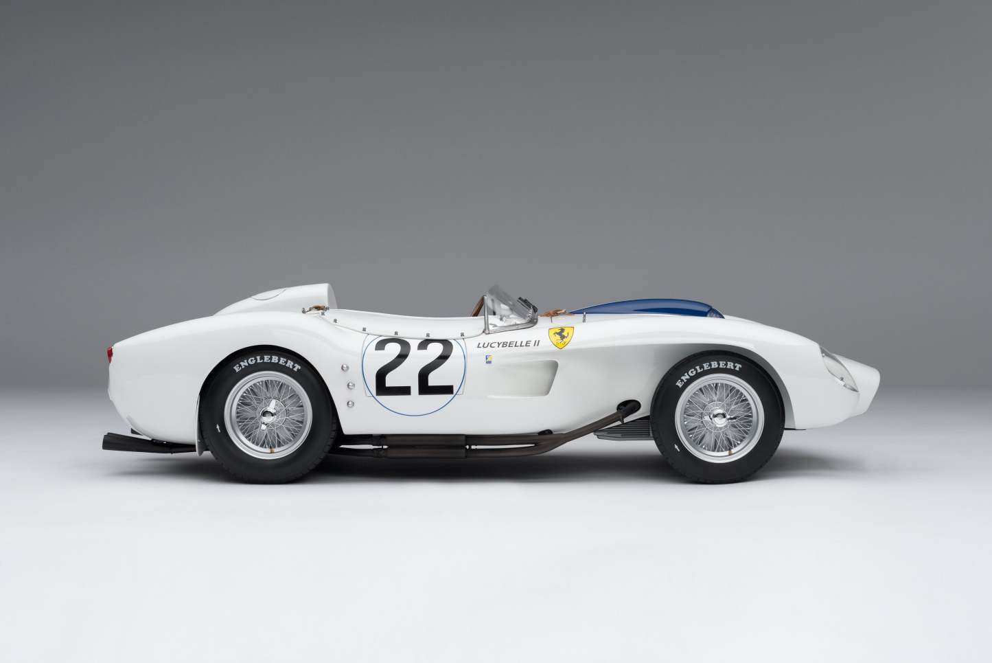 During this exciting year for the Maranello giant, the ‘Lucy Belle’ was entered for the 24 Heures du Mans by privateer, Ed Hugus under the race number ‘22’. To set the scene, the La Sarthe race of that year attracted a huge crowd of some 150,000 spectators, gathered in anticipation of an exciting and closely matched dual between Ferrari, Jaguar, Aston Martin and Porsche. In and amongst this background of similarly paced works race teams, the Lucy Belle, piloted by Ed Hugus and team mate Ray ‘Ernie’ Erickson, achieved a commendably seventh place overall. The Scuderia Ferrari, who had a bumper entry of 11 cars in the race, made up of both works entries and privateer teams, eventually won the race.