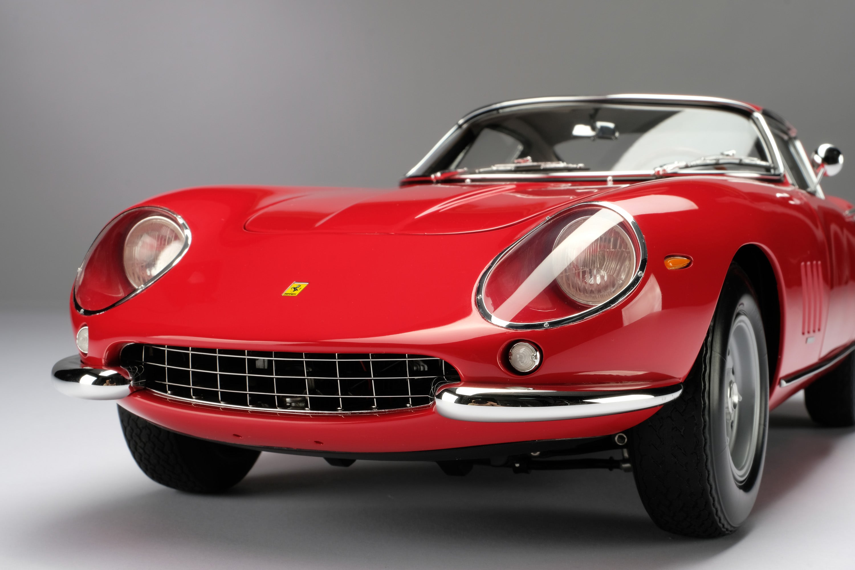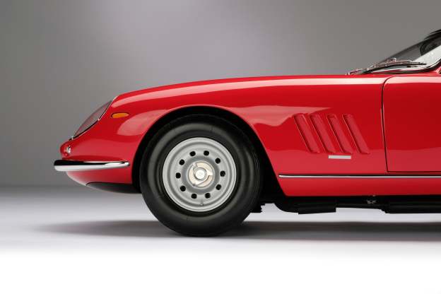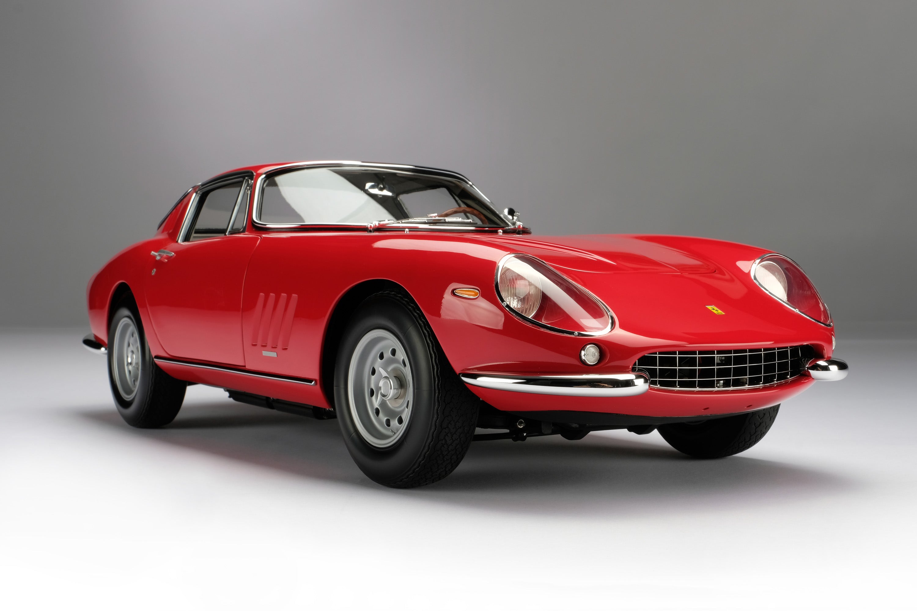 This fine 1:8 scale model is of the Ferrari 275 GTB/4 as revealed at the Paris Motor Show in October in 1966. It has been handcrafted and finished in our workshops with the co-operation and assistance of Ferrari regarding original finishes, materials, archive imagery and drawings. The use of supremely accurate digital scanning of the original car has allowed us to perfectly recreate every detail at scale. Furthermore, it has undergone detailed scrutiny by both Ferrari’s engineering and design teams to ensure complete accuracy of representation.