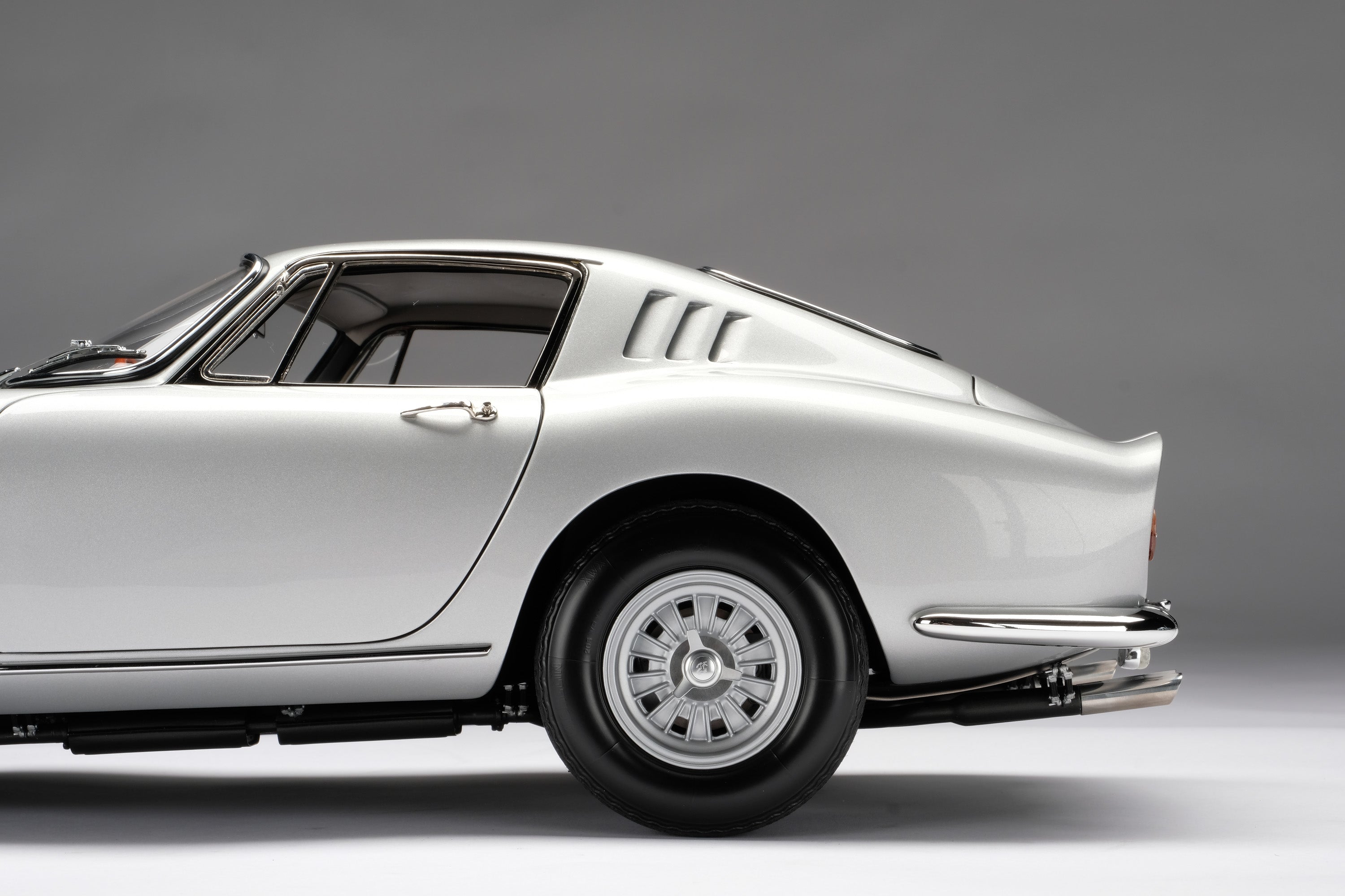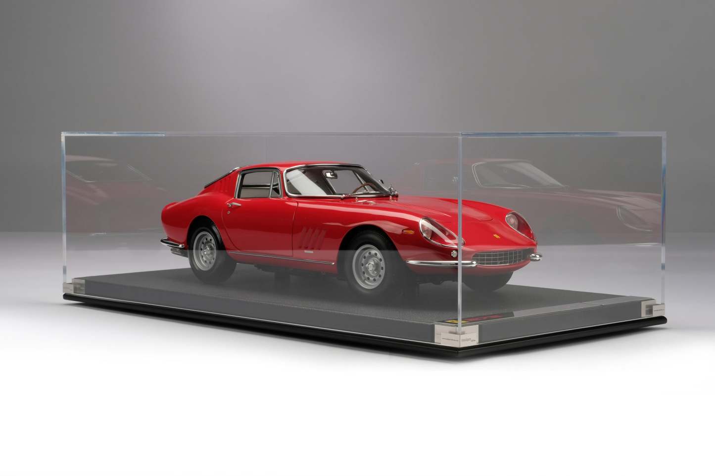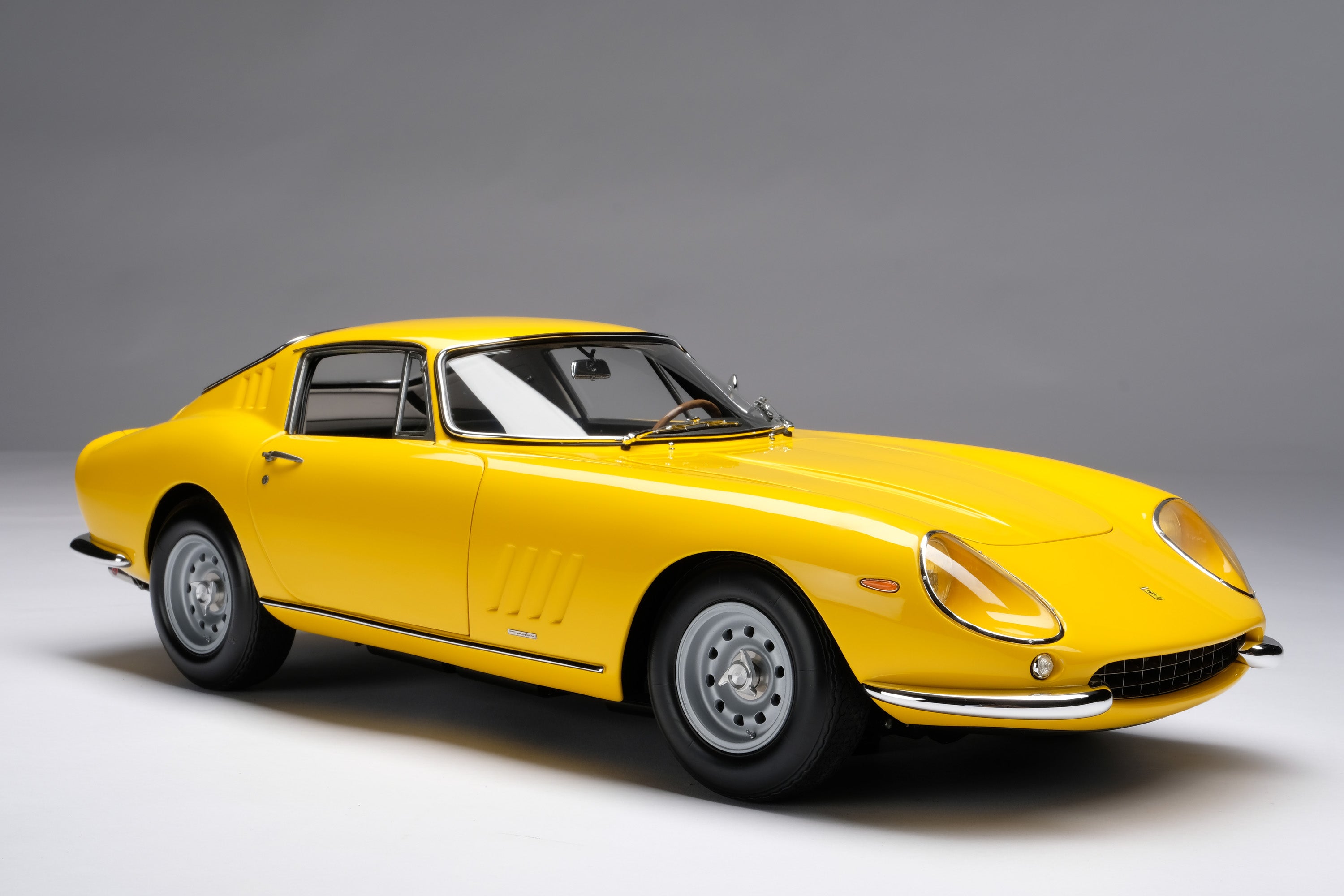 This fine 1:8 scale model is of the Ferrari 275 GTB/4 as revealed at the Paris Motor Show in October in 1966. It has been handcrafted and finished in our workshops with the co-operation and assistance of Ferrari regarding original finishes, materials, archive imagery and drawings. The use of supremely accurate digital scanning of the original car has allowed us to perfectly recreate every detail at scale. Furthermore, it has undergone detailed scrutiny by both Ferrari’s engineering and design teams to ensure complete accuracy of representation.