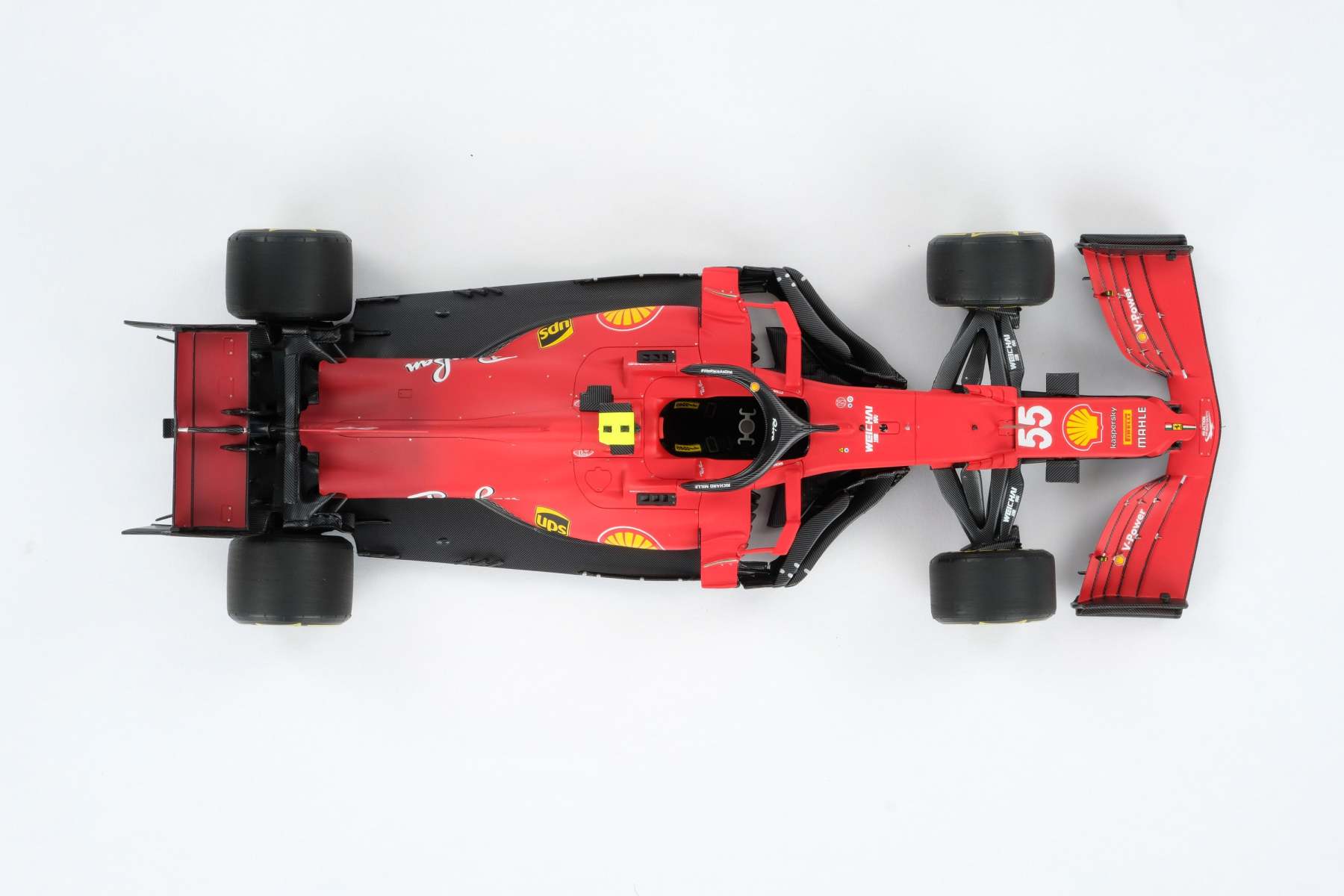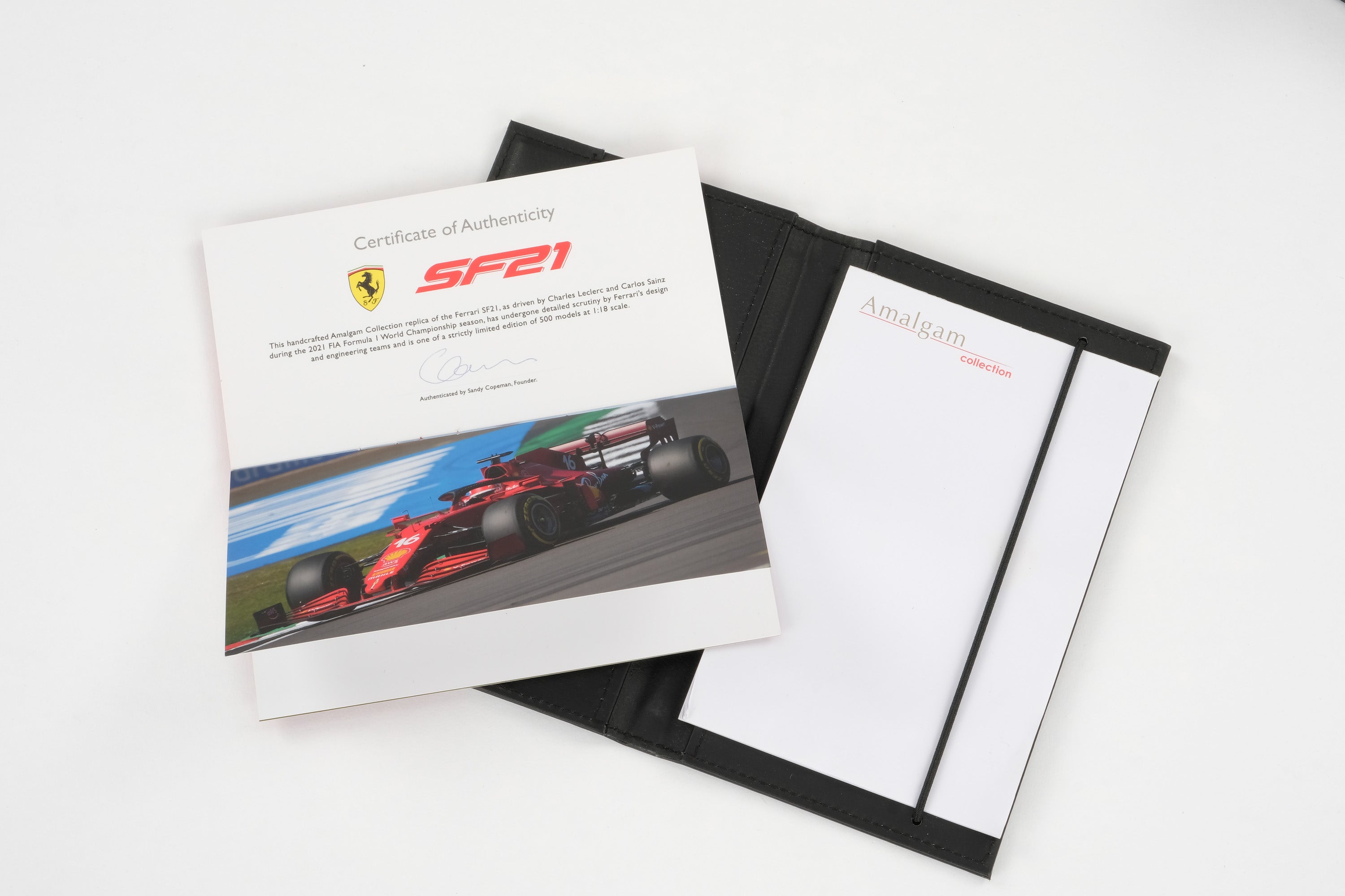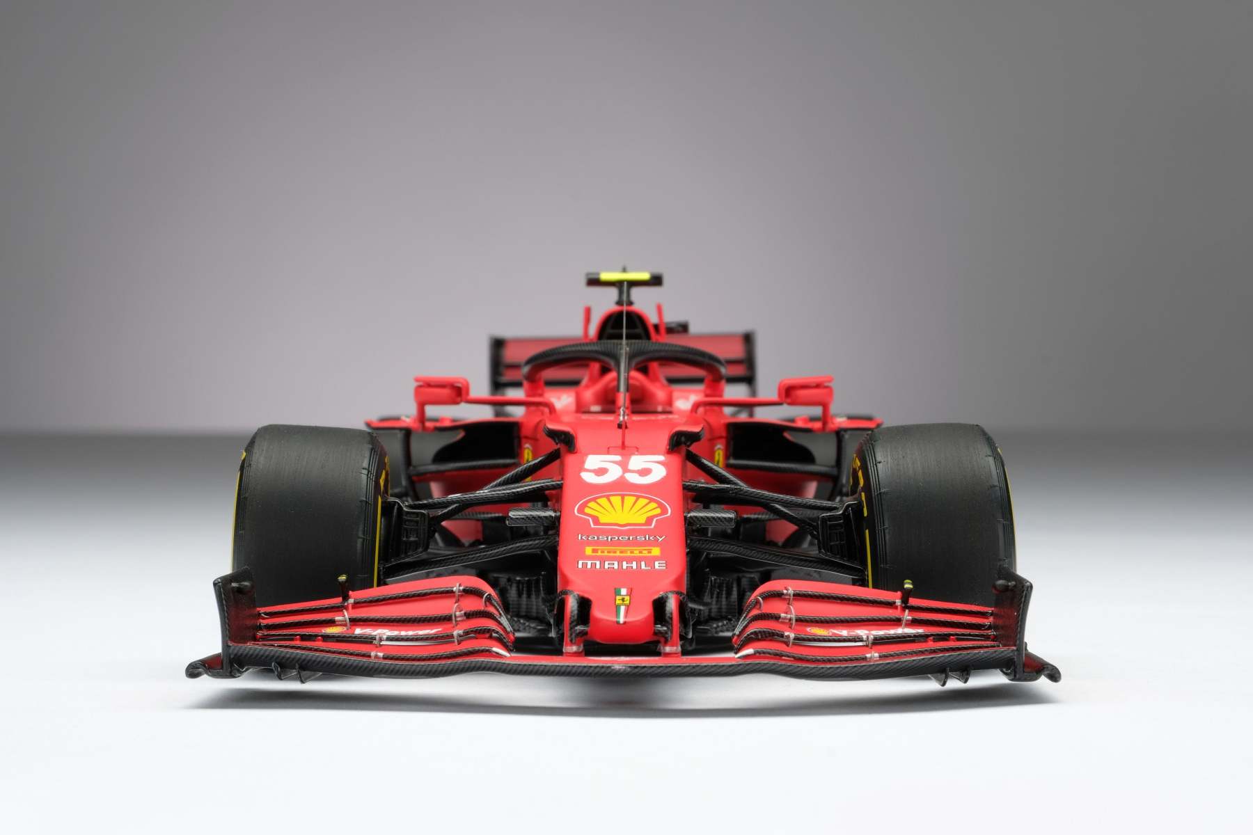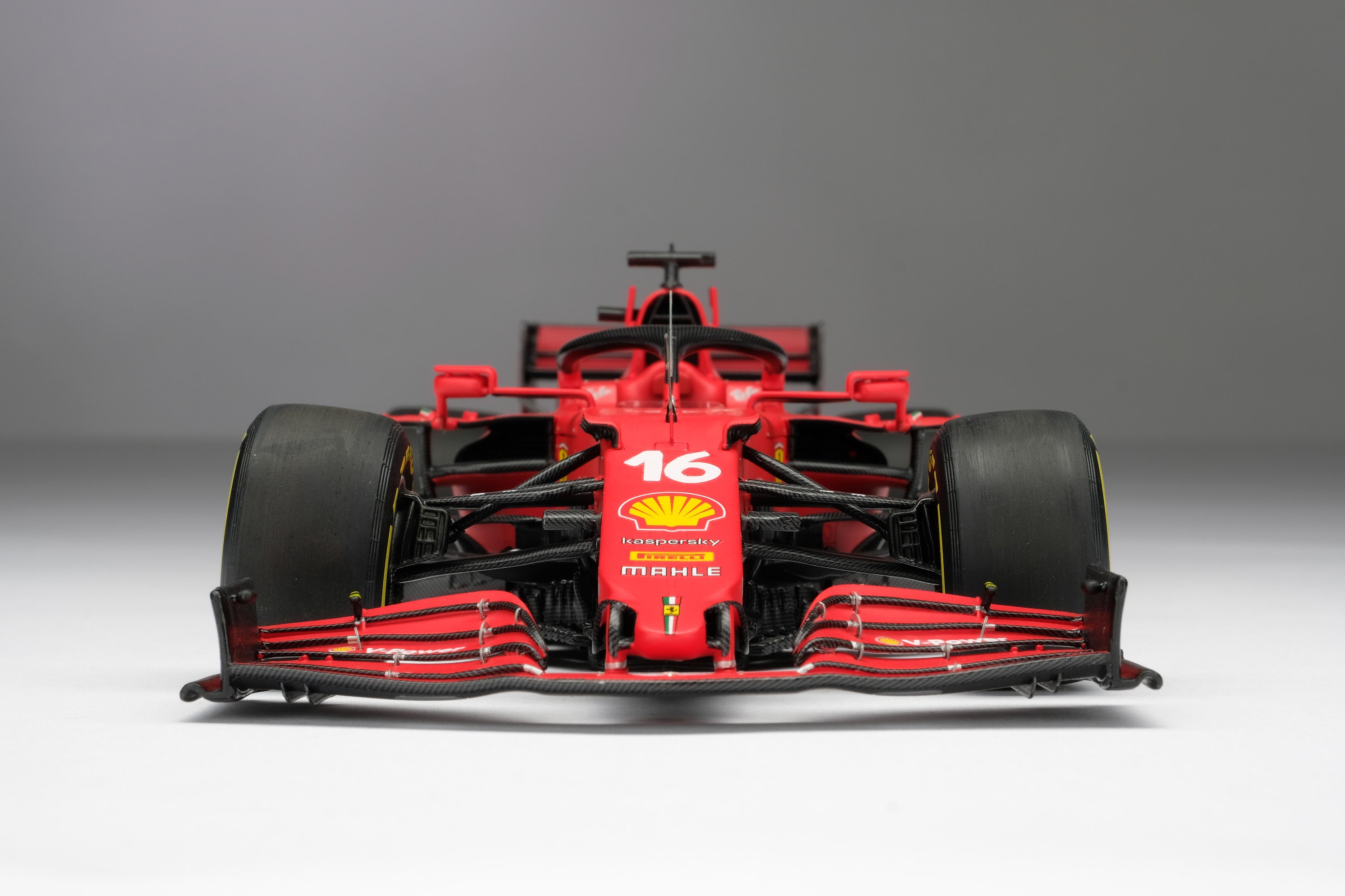 This fine 1:18 scale model of the Ferrari SF21, as raced during the 2021 FIA Formula 1 World Championship season by Charles Leclerc and Carlos Sainz, has been handcrafted and finished in our workshops with the co-operation and assistance of Scuderia Ferrari regarding original CAD data, finishes and paint codes. Furthermore, it has undergone detailed scrutiny by both engineering and design teams to ensure complete accuracy of representation.