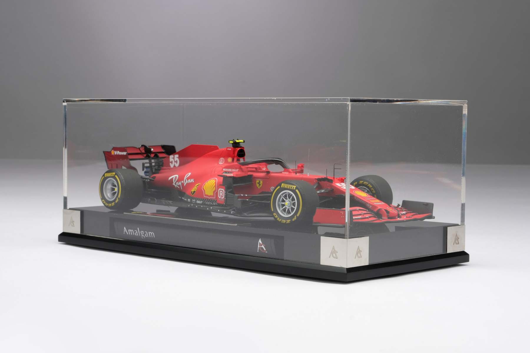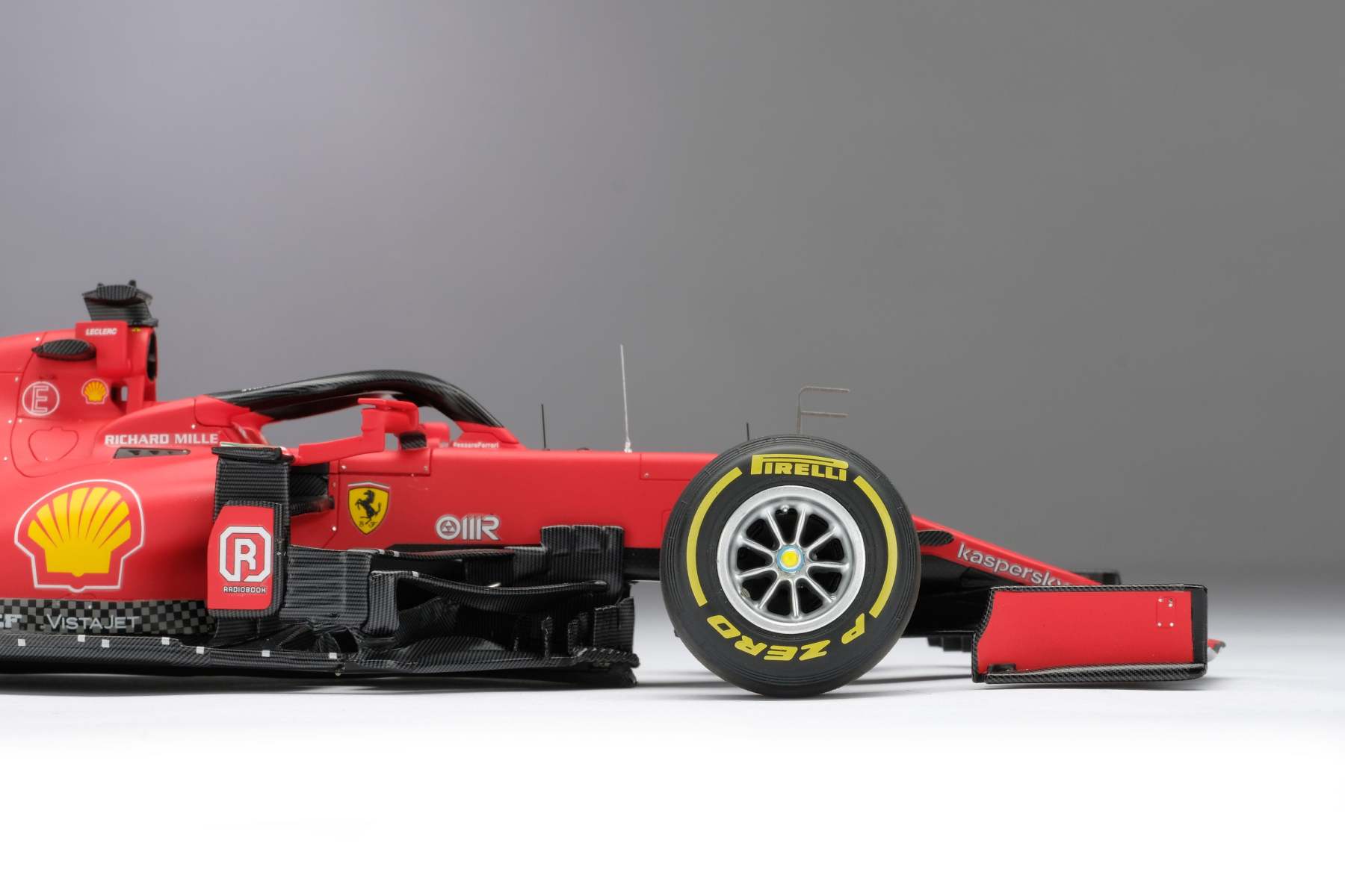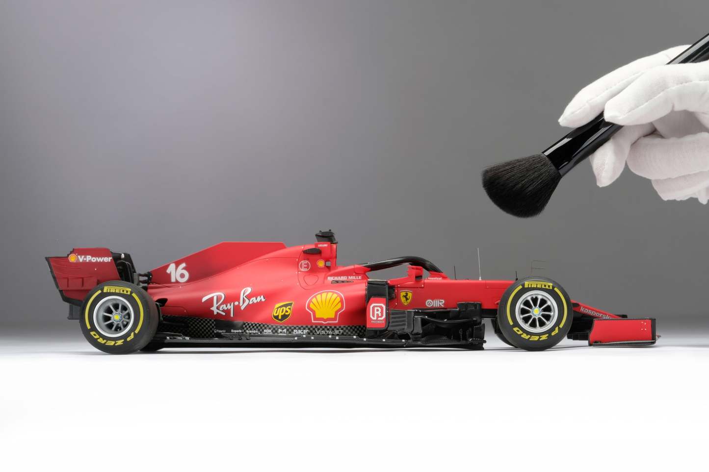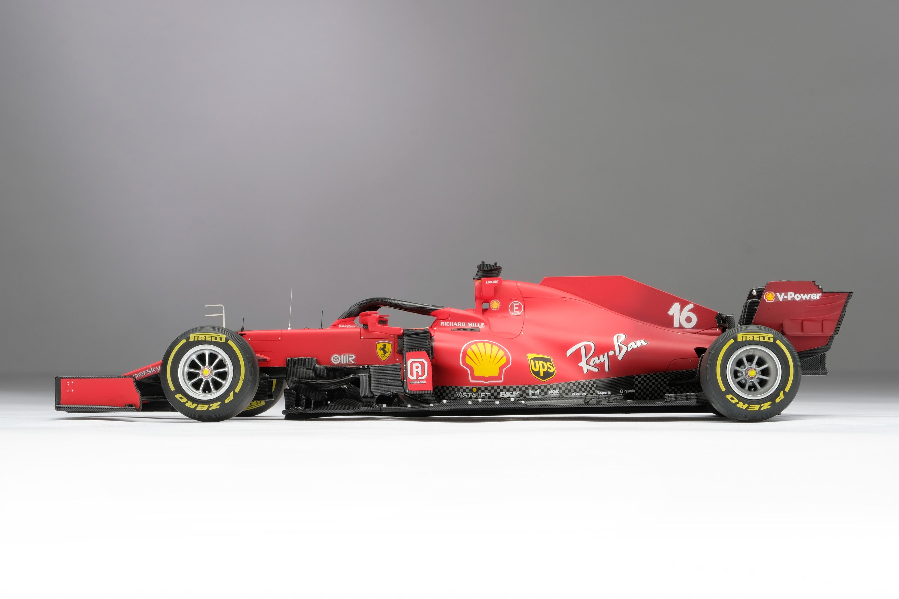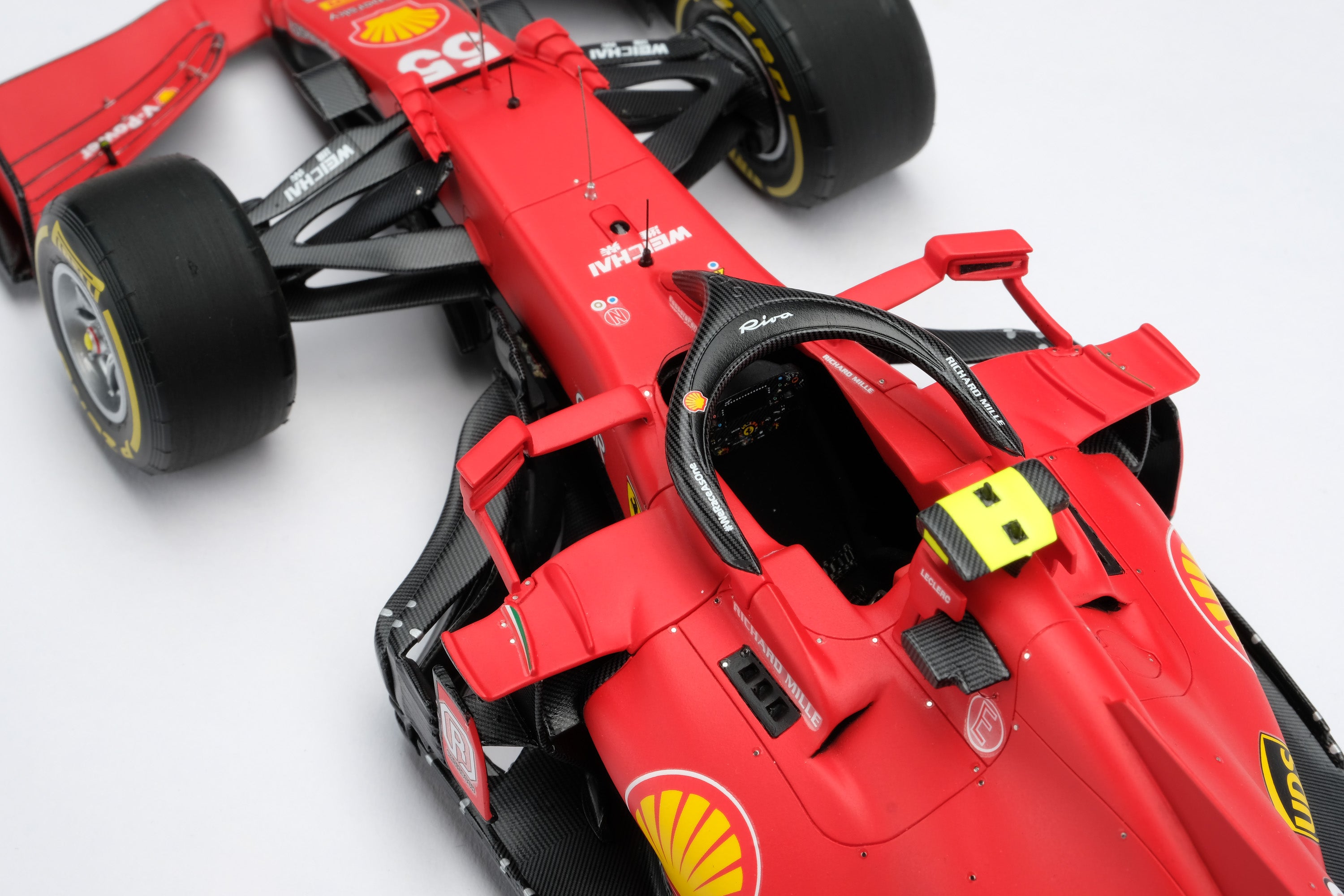 This fine 1:18 scale model of the Ferrari SF21, as raced during the 2021 FIA Formula 1 World Championship season by Charles Leclerc and Carlos Sainz, has been handcrafted and finished in our workshops with the co-operation and assistance of Scuderia Ferrari regarding original CAD data, finishes and paint codes. Furthermore, it has undergone detailed scrutiny by both engineering and design teams to ensure complete accuracy of representation.