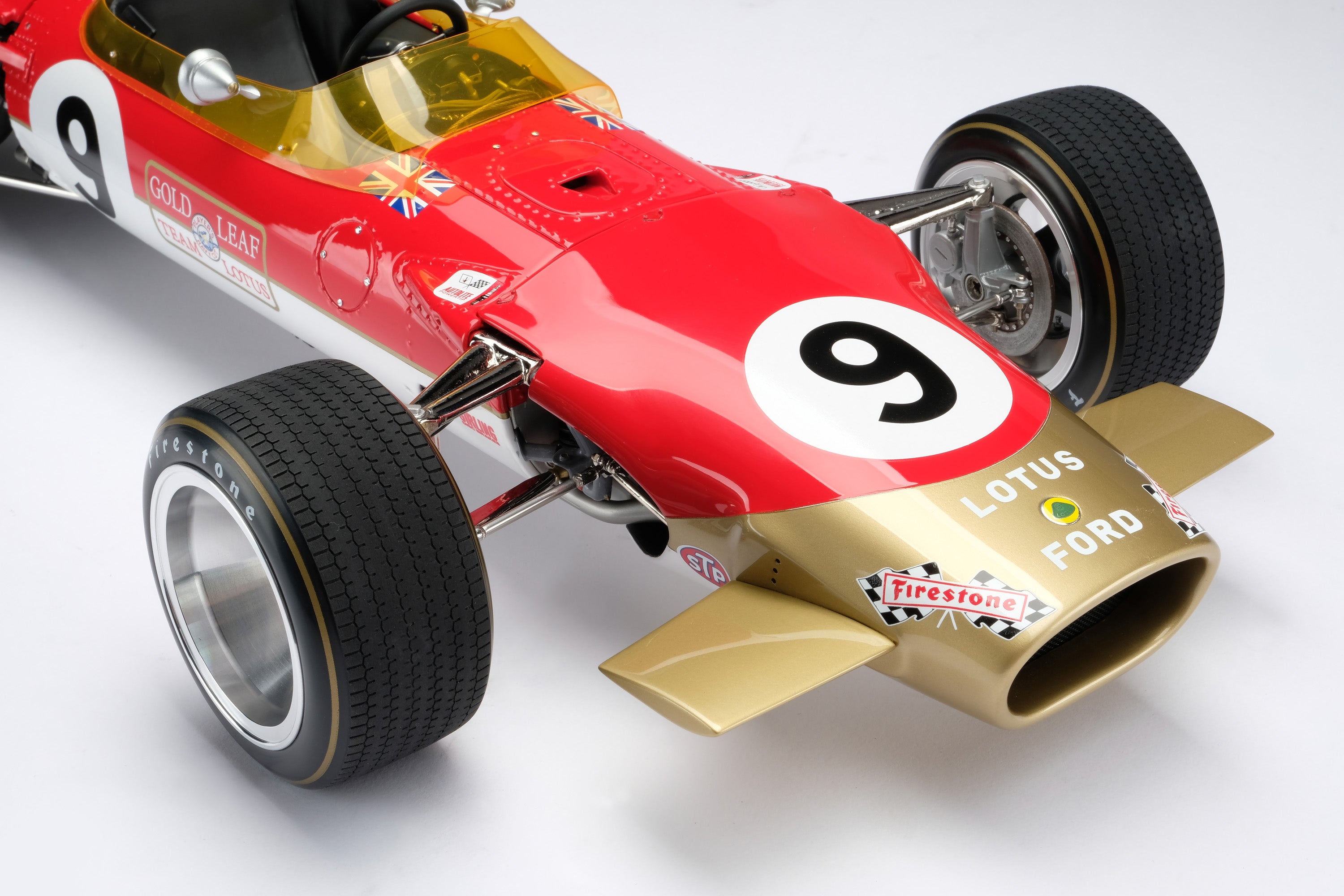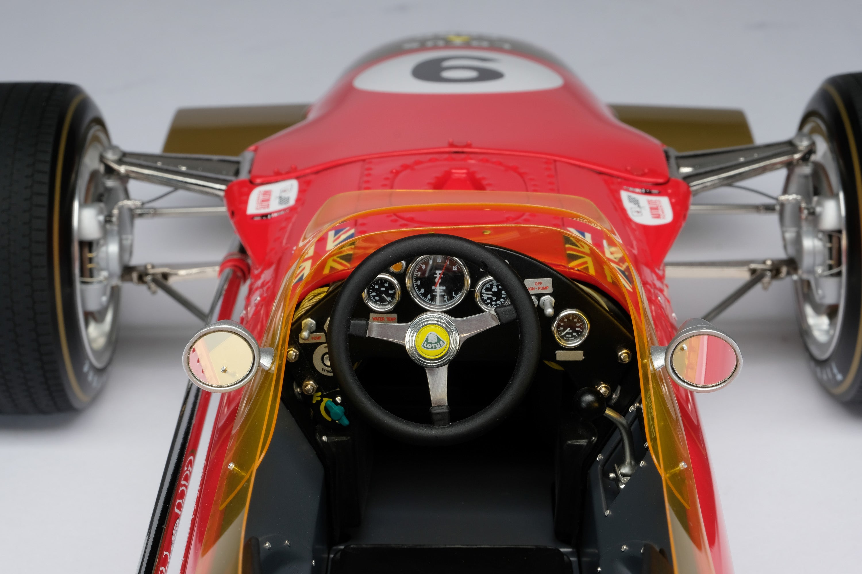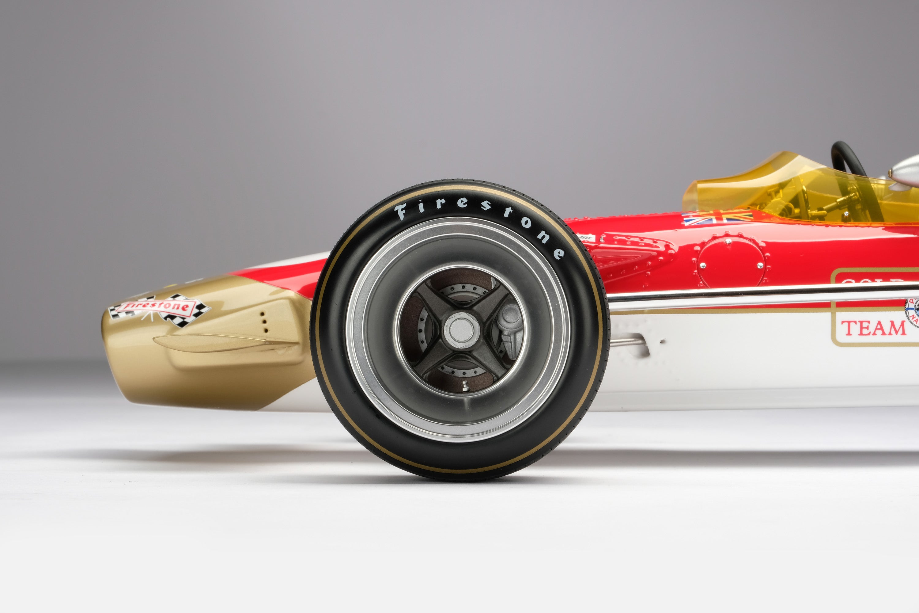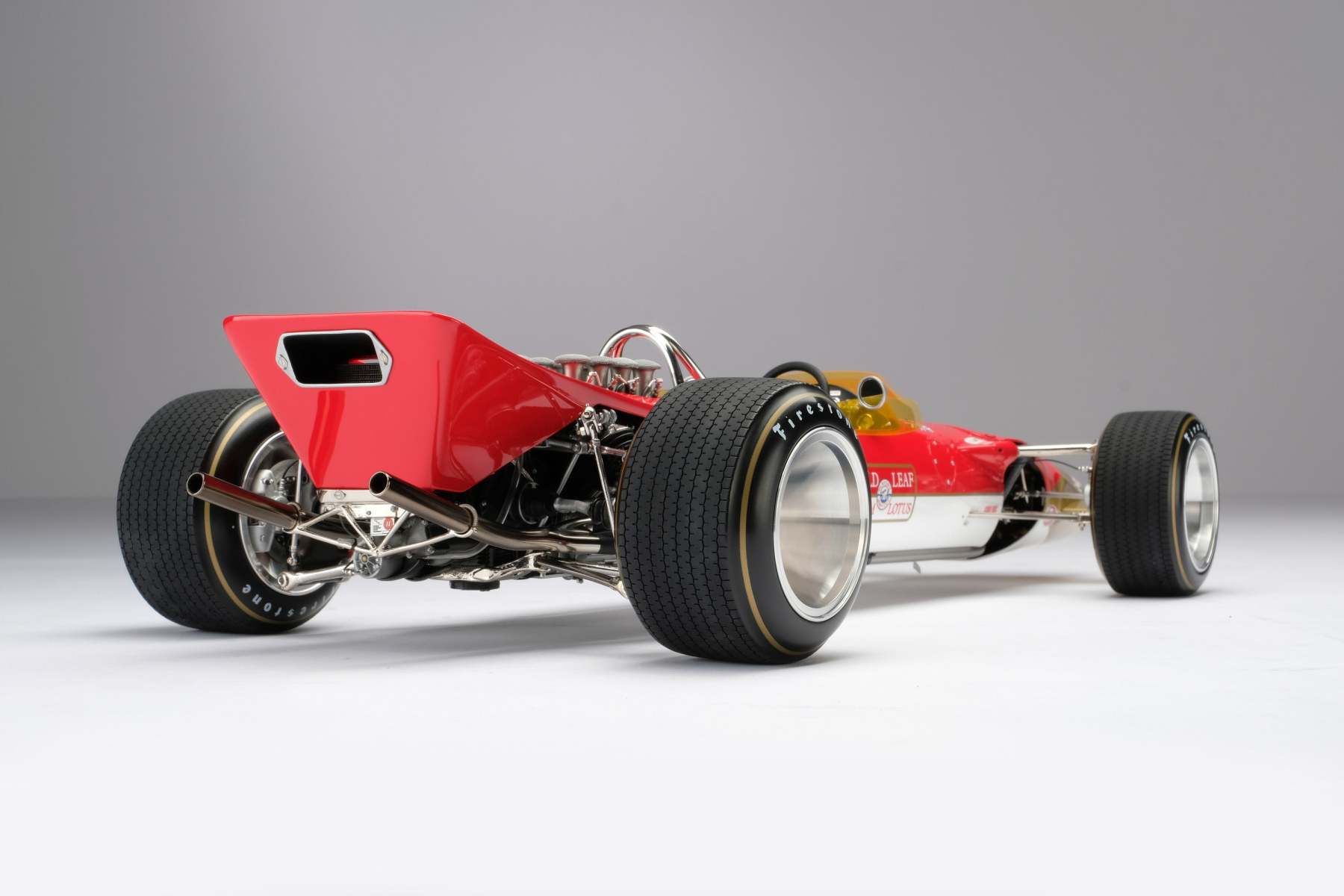 This model is a 1:8 scale recreation of the Lotus 49B as raced to victory by Graham Hill in the 1968 Monaco Grand Prix. Hill qualified on pole and survived an incident-packed race that saw only five cars reach the chequered flag, before he cemented his reputation as "Mr. Monaco" by taking his fourth win in the principality. Hill would go on to win his second World Championship whilst Lotus would win their third Constructors’ Title.