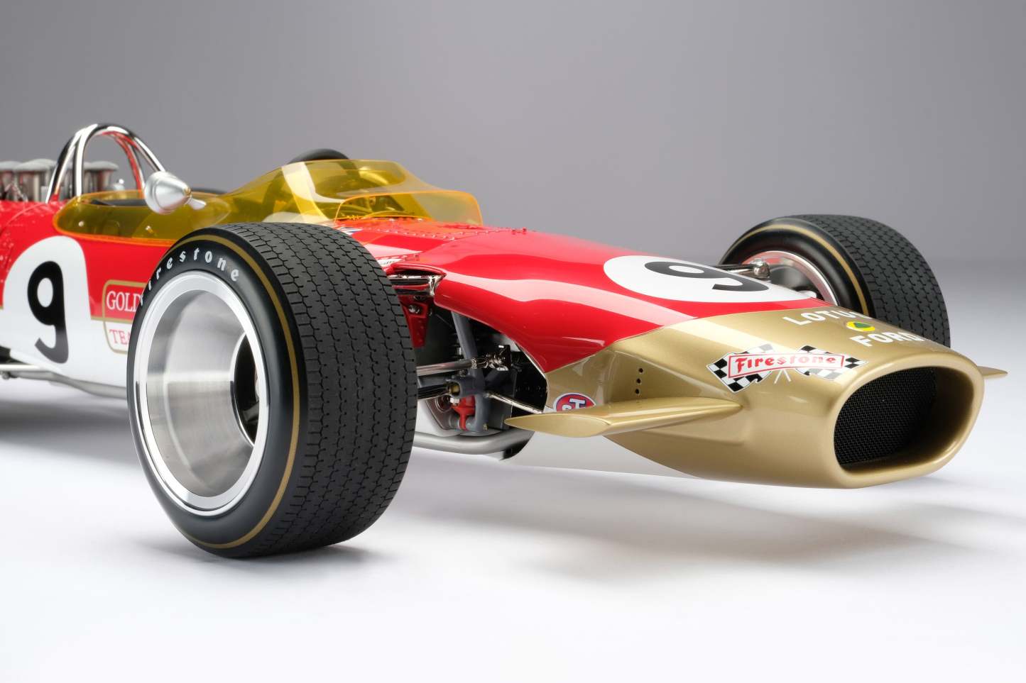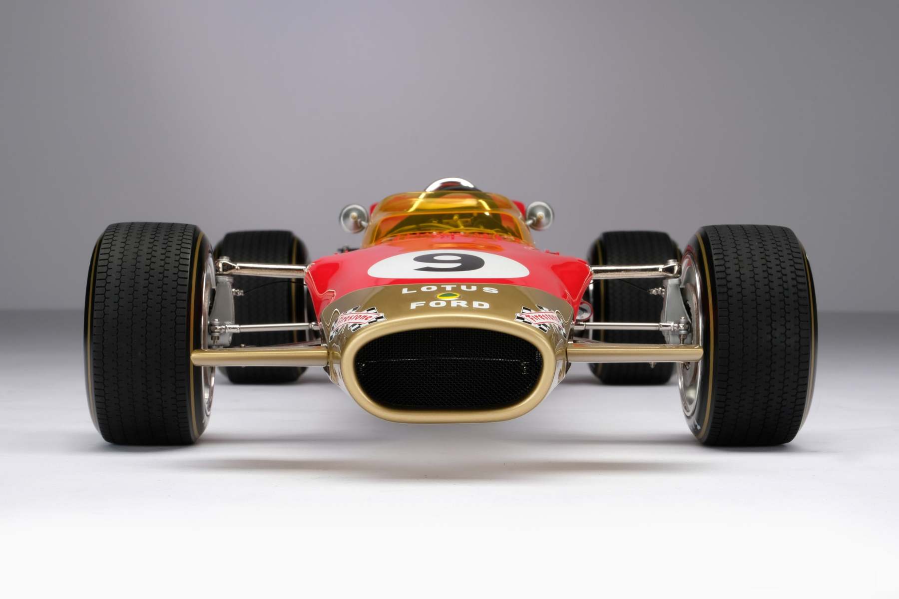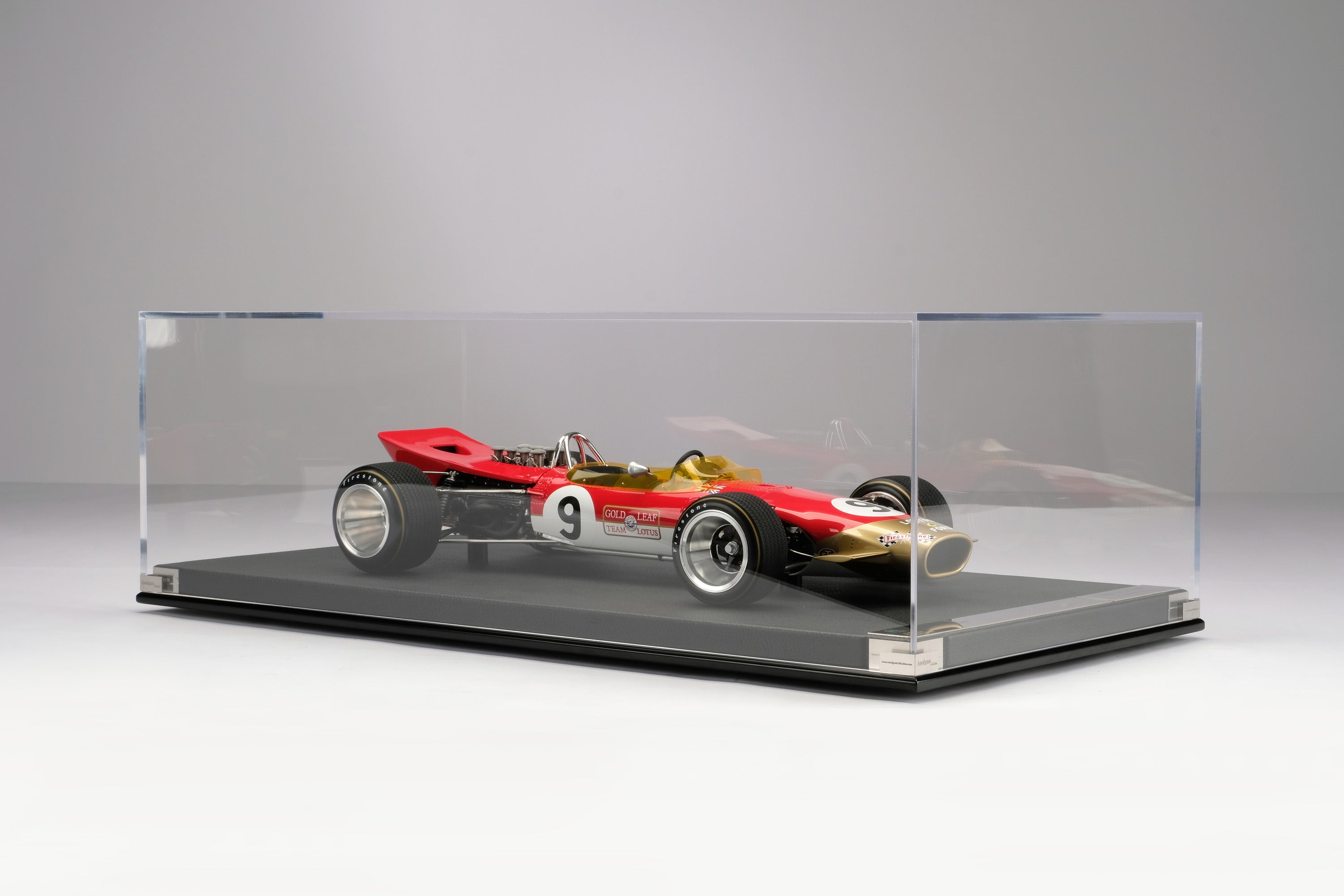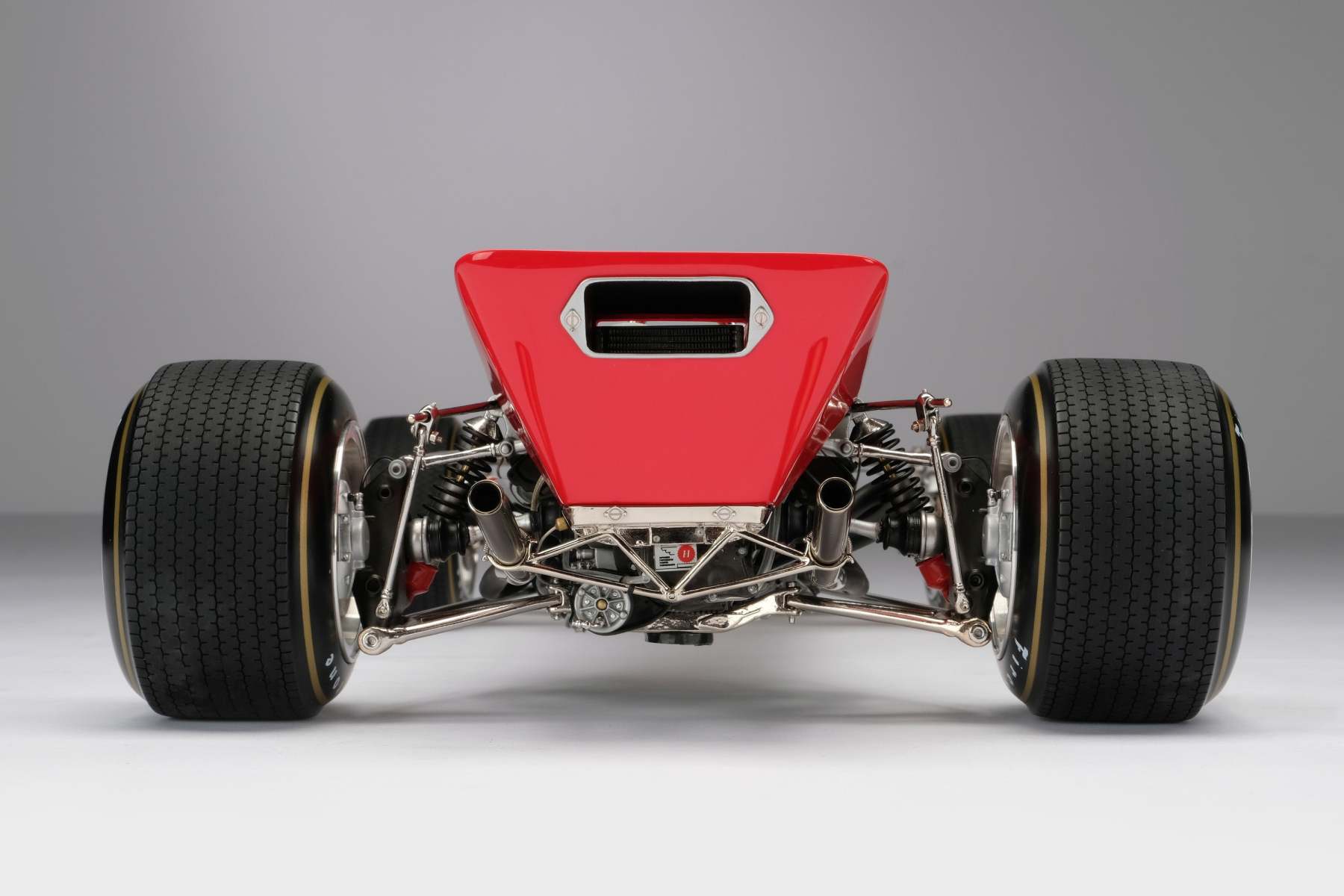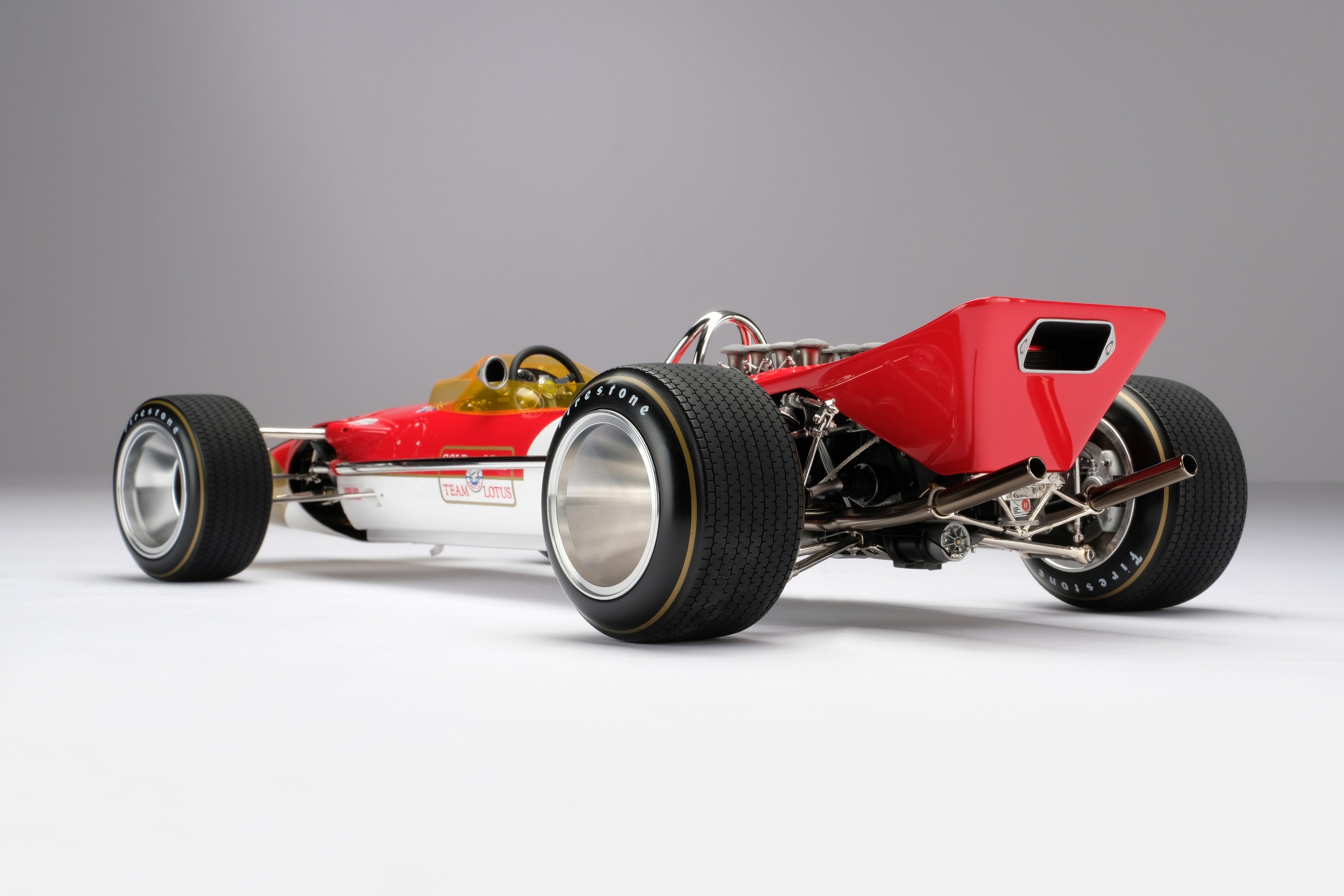 This model is a 1:8 scale recreation of the Lotus 49B as raced to victory by Graham Hill in the 1968 Monaco Grand Prix. Hill qualified on pole and survived an incident-packed race that saw only five cars reach the chequered flag, before he cemented his reputation as "Mr. Monaco" by taking his fourth win in the principality. Hill would go on to win his second World Championship whilst Lotus would win their third Constructors’ Title.