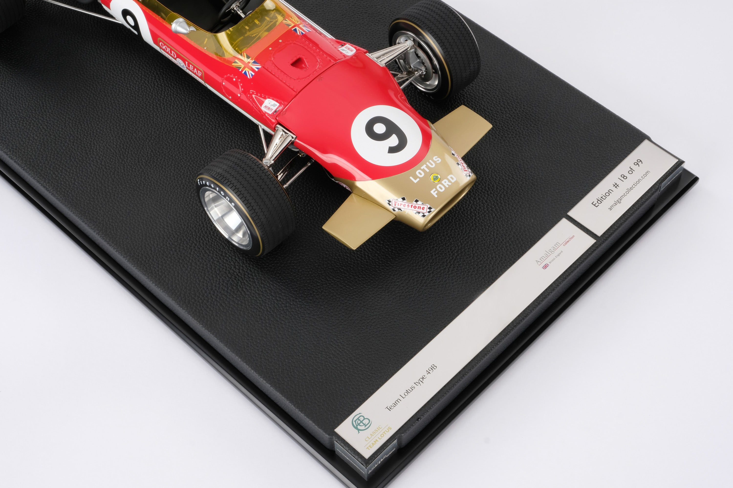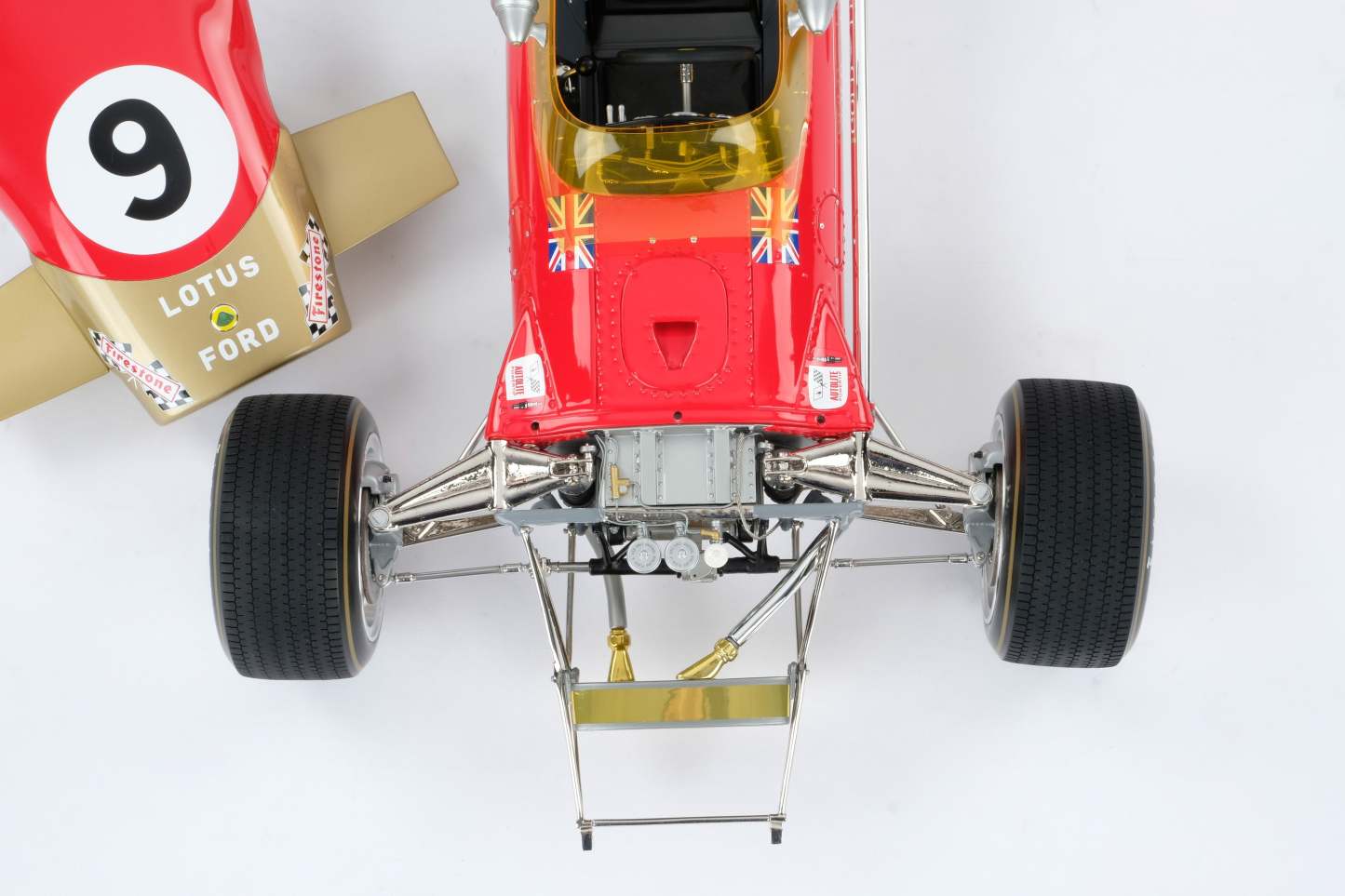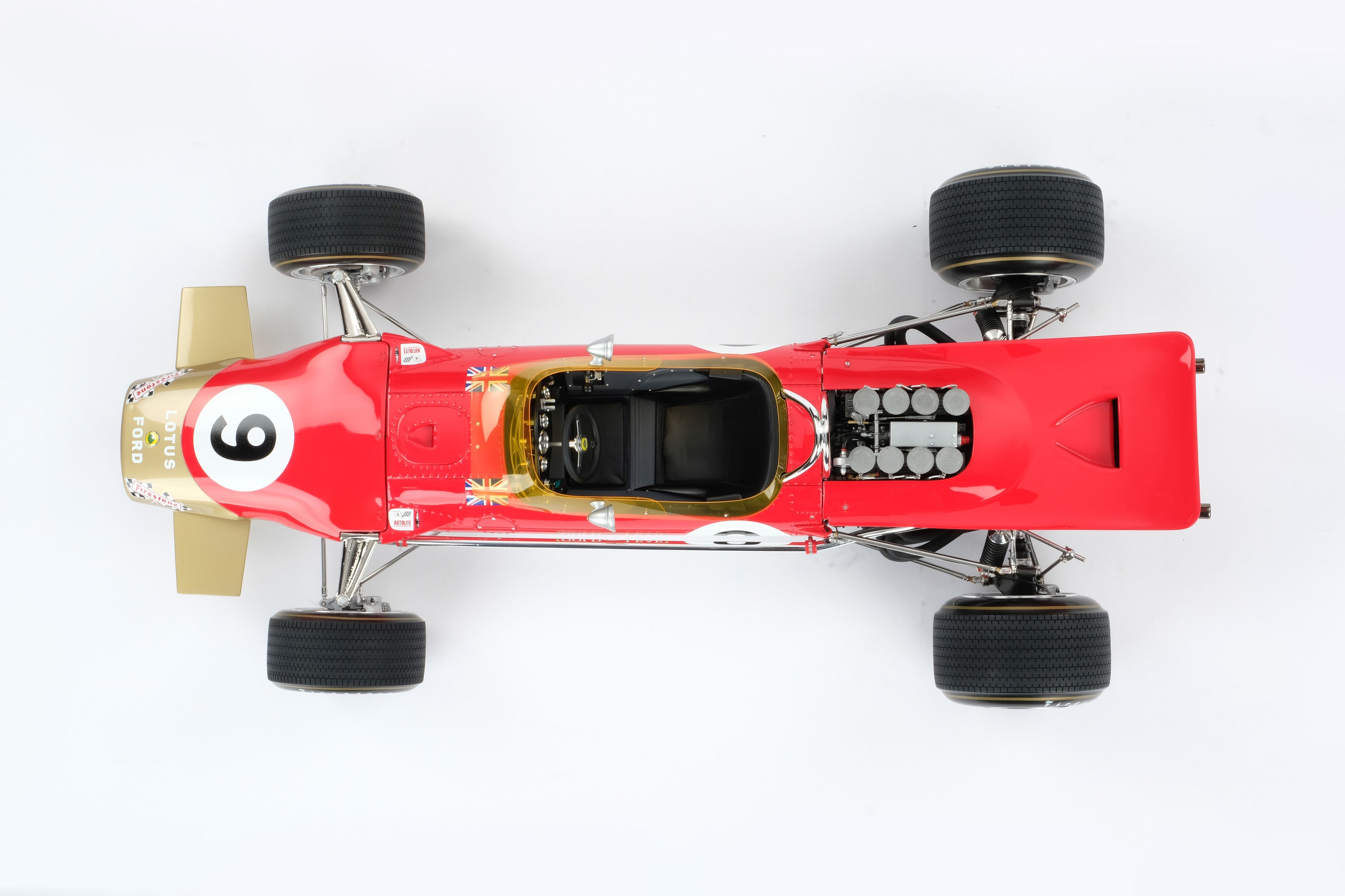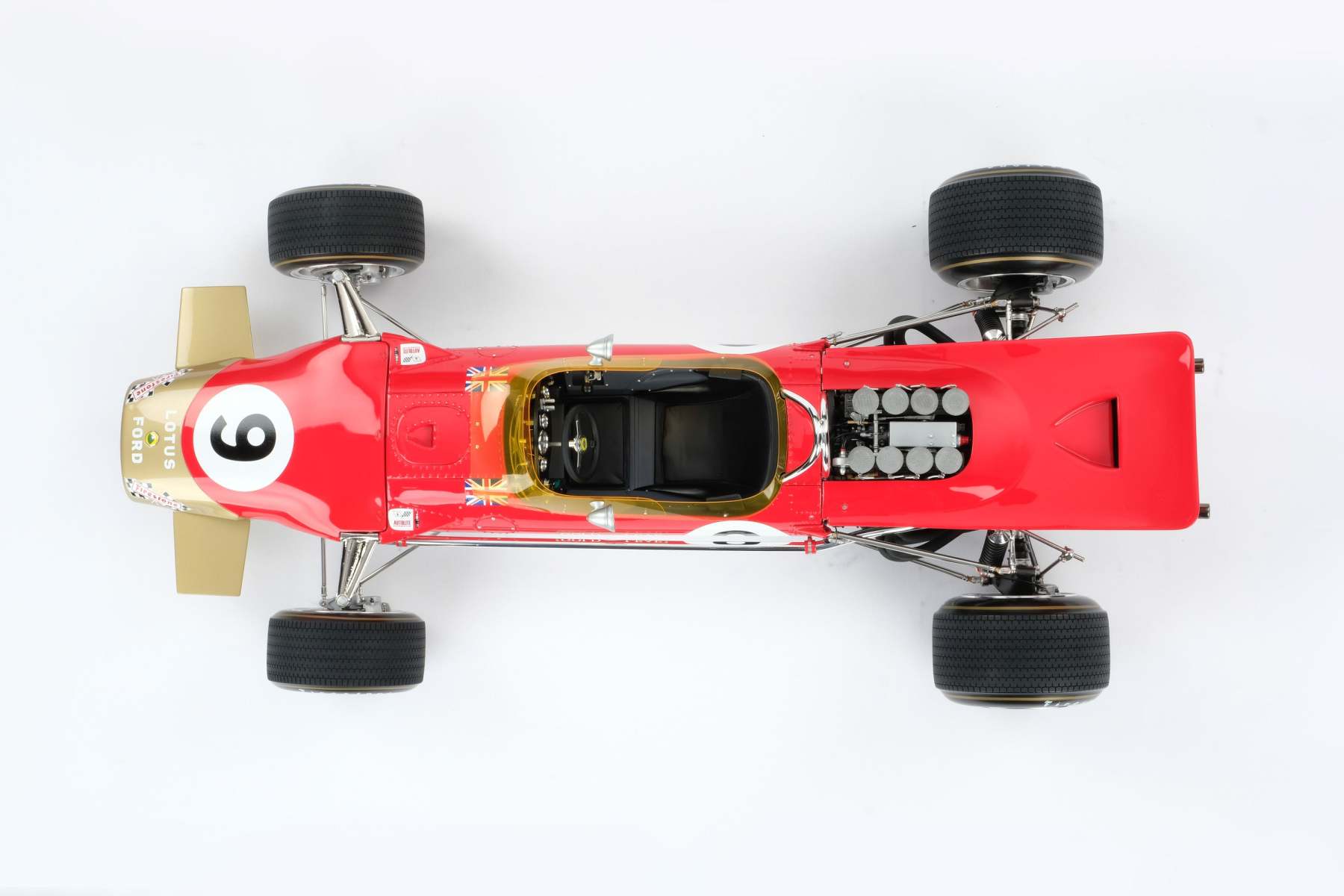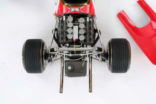 This model is a 1:8 scale recreation of the Lotus 49B as raced to victory by Graham Hill in the 1968 Monaco Grand Prix. Hill qualified on pole and survived an incident-packed race that saw only five cars reach the chequered flag, before he cemented his reputation as "Mr. Monaco" by taking his fourth win in the principality. Hill would go on to win his second World Championship whilst Lotus would win their third Constructors’ Title.