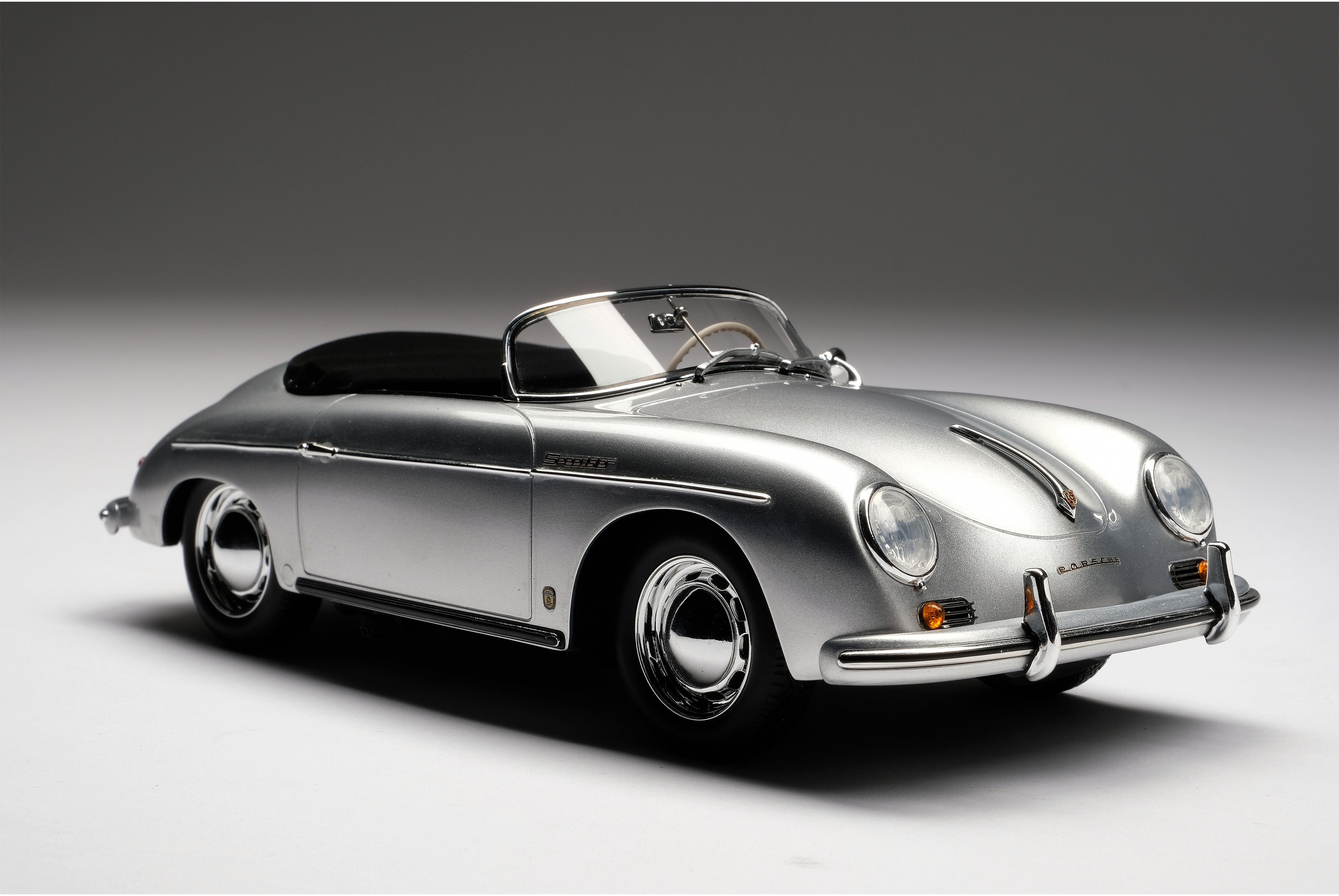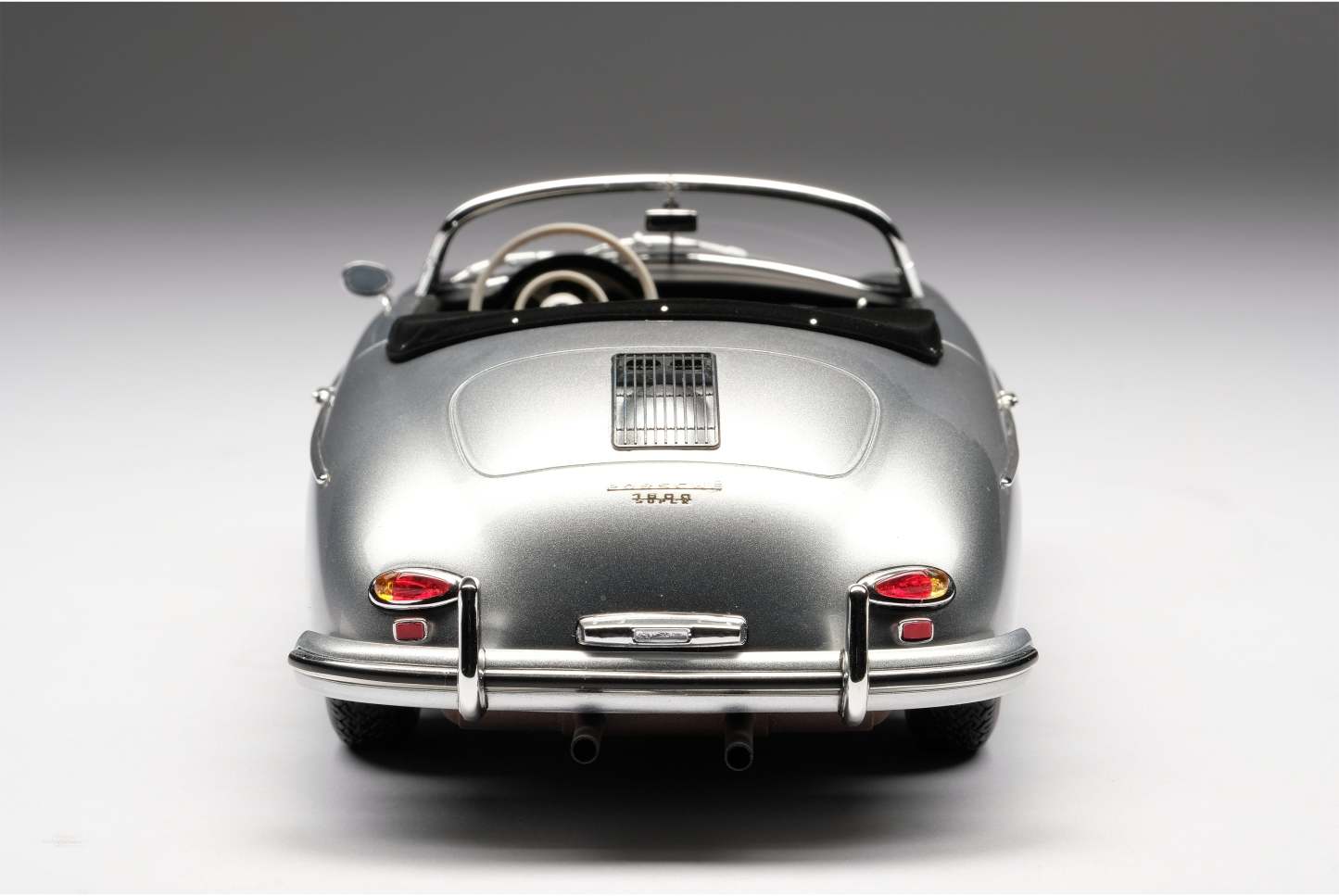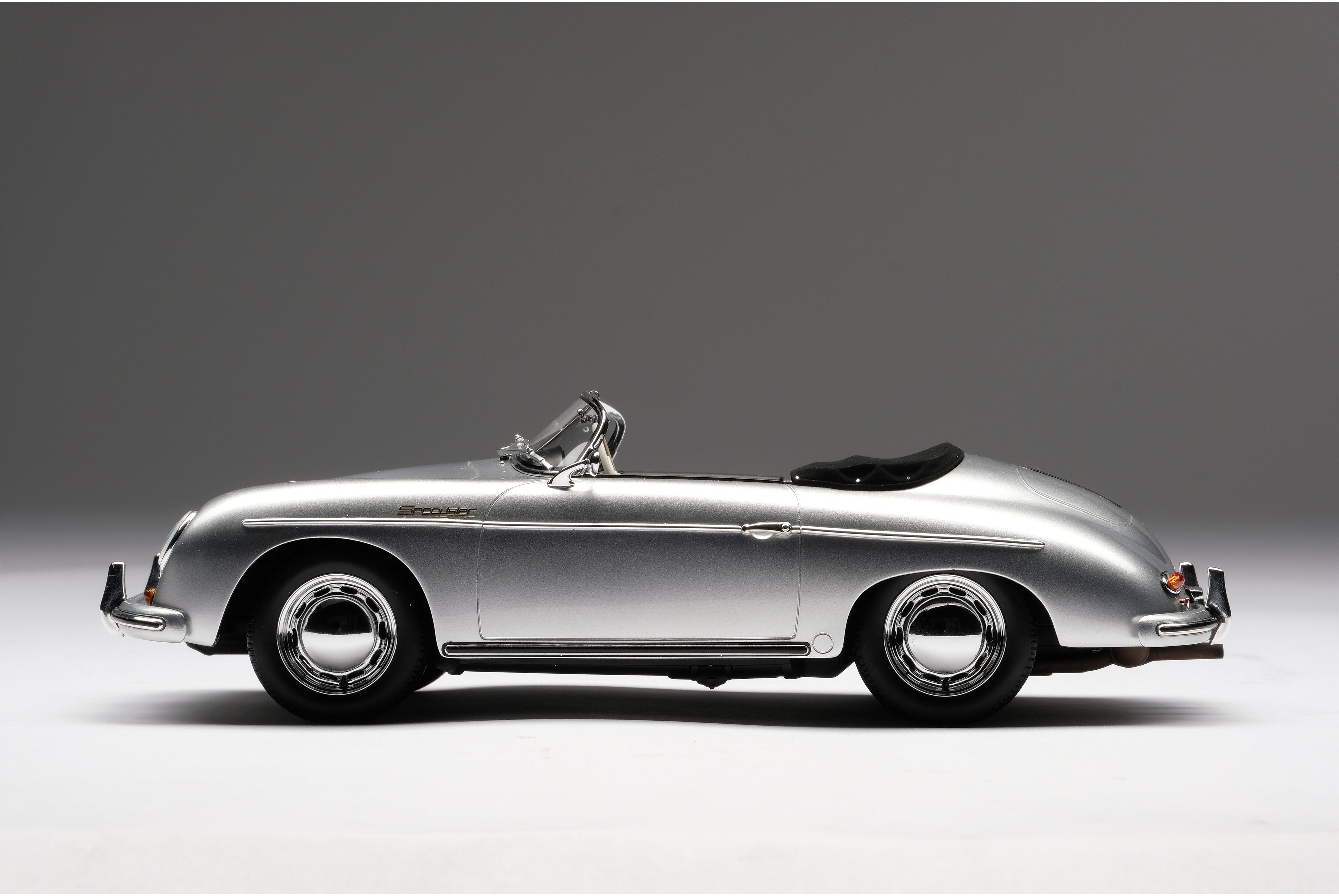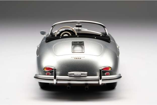 This fine 1:18 scale model is of the Type 2 (or ‘T2’) variant, revised in 1957 to incorporate its exhausts through the rear bumper over-riders. The Speedster version offered some significant differences to it coupé and cabriolet siblings, with a low removable windscreen for weekend racing, fixed bucket seats and side curtains instead of wind-up windows. The ‘T2’ also benefitted from a number of improvements to the gearbox, clutch and steering which made them easier and more pleasant to drive.